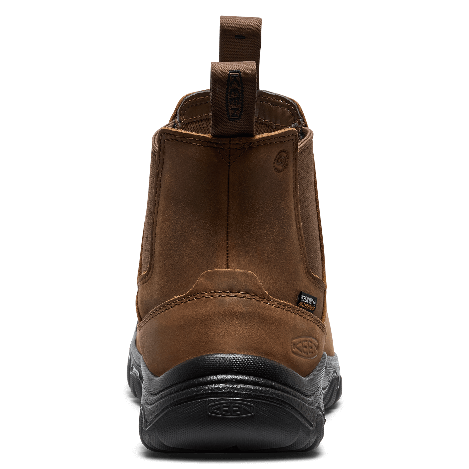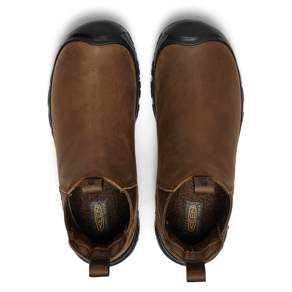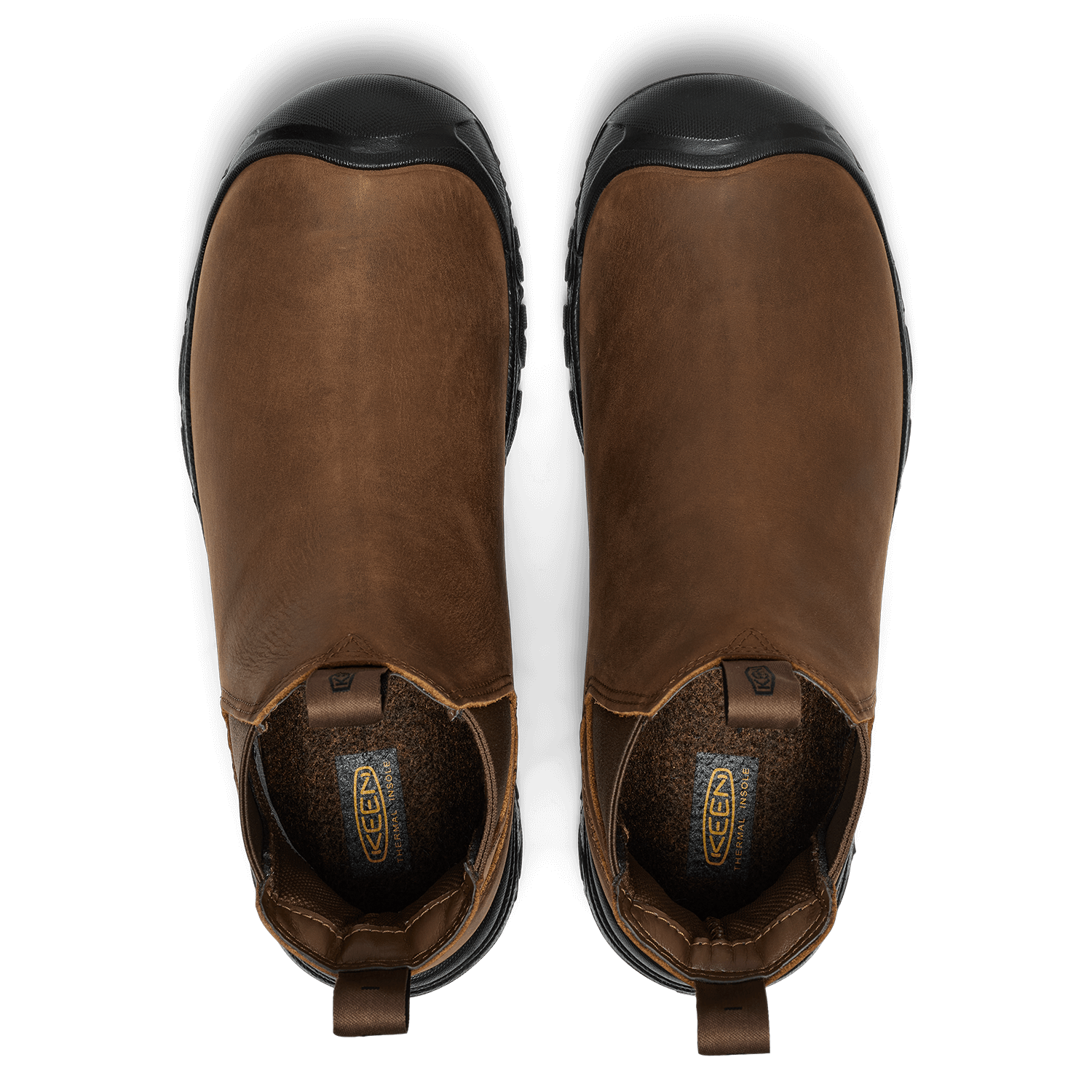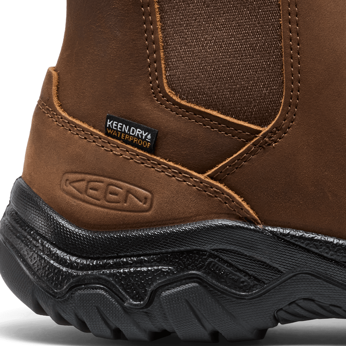 Die KEEN Anchorage IV ist ein robuster und gleichzeitig stilvoller Winterstiefel für Herren. Der Chelsea Boot besteht aus wasserabweisendem Premiumleder in einer klassischen Farbe – perfekt für den alltäglichen Gebrauch und gut kombinierbar mit casual Outfits. Dank der Wasserfestigkeit, Isolierung und der robusten Profilsohle bist du bestens für den Winter gerüstet. Die KEEN.WARM-Fütterung aus recyceltem PET und die Thermal Heat Shield-Zwischensohle halten deine Füße bis zu –32 °C warm. Das wasserdichte KEEN.DRY-Membran sorgt dafür, dass die Stiefel wasserfest bleiben, während deine Füße gleichzeitig atmen können.