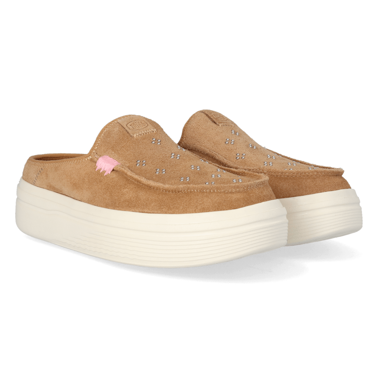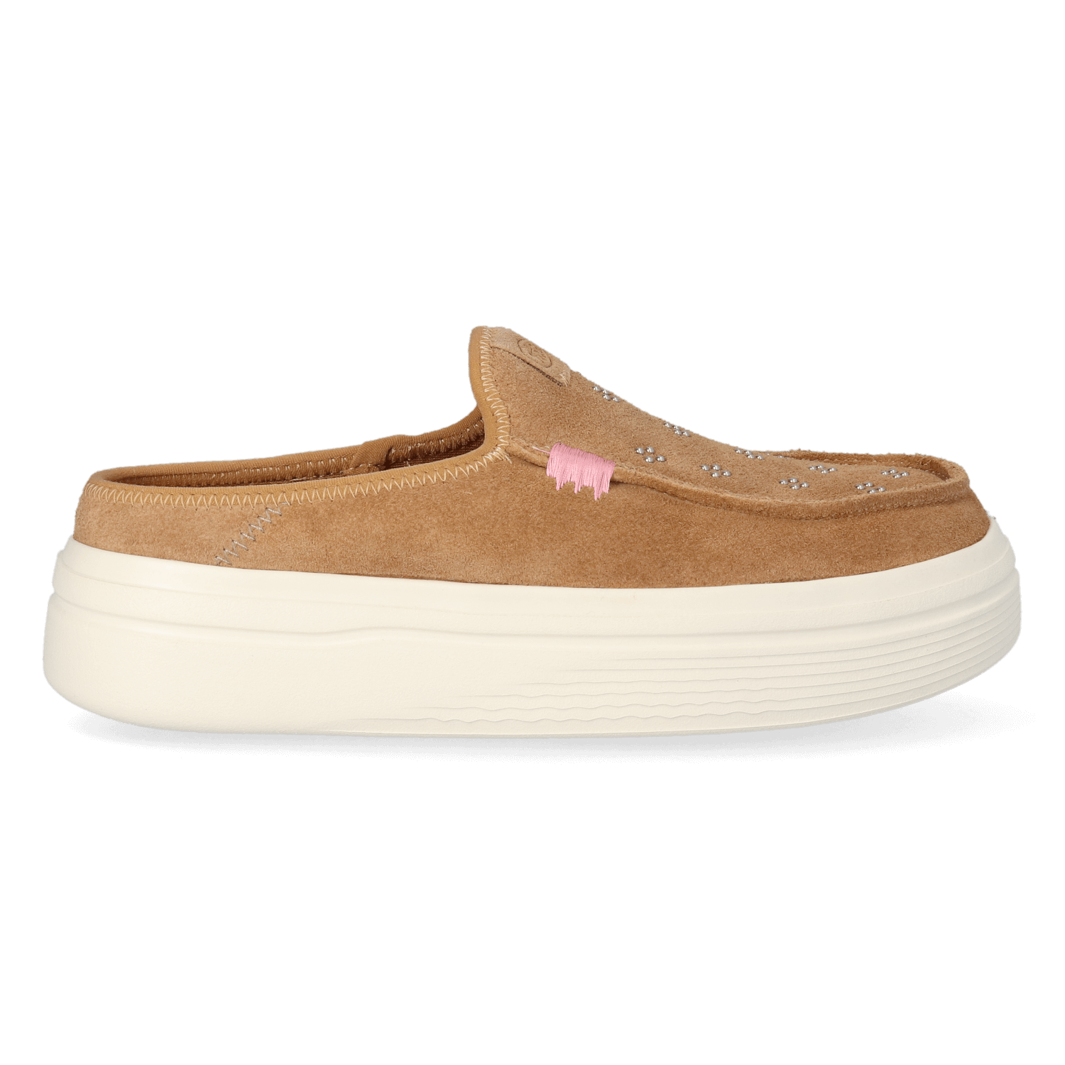 Einfach reinschlüpfen und loslaufen – mit dem Austin Lift Slip-On von HEYDUDE. Das Obermaterial aus Wildleder mit Nieten verleiht dem Look eine dezente Western-Note – lässig und trotzdem elegant. Kombiniere sie mit Leggings und Oversized-Sweatshirt für entspannten Alltagskomfort oder trage sie mit einem Faltenrock aus Denim für deinen Abendlook. Die leichte Sohle mit 3,4 cm Höhe sorgt für einen dezenten Boost – und bei jedem Schritt für die typische HEYDUDE-Dämpfung.
