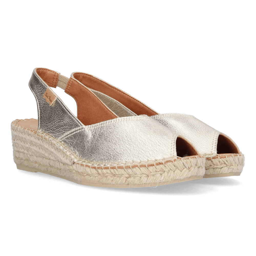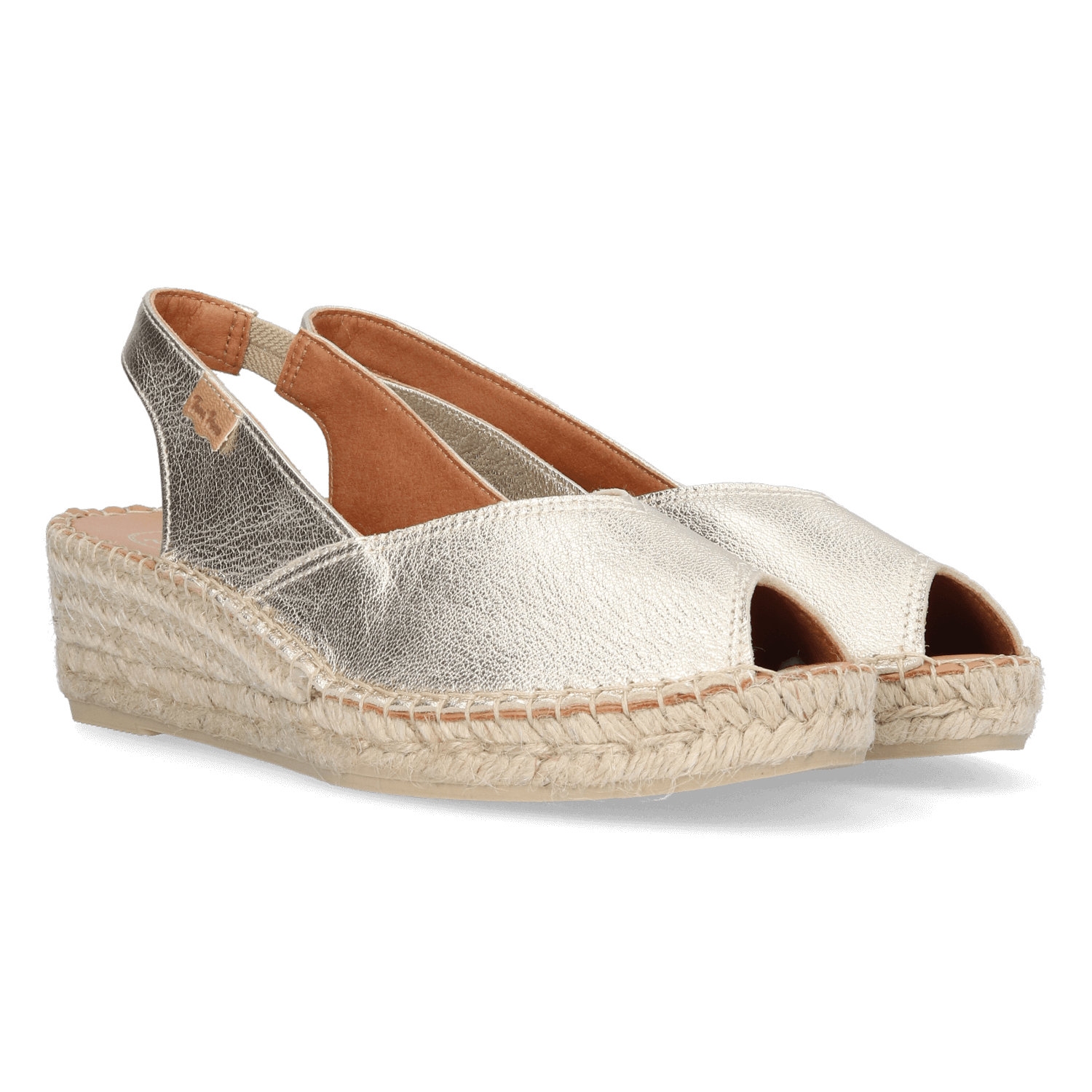 Wenn man Espadrilles sieht, denkt man gleich an den Sommer. Diese Bernia-P Peeptoe Espadrille aus der Origens-Kollektion von Toni Pons strahlen dies sofort aus. Man möchte die Schuhe sofort mit seinem Lieblings-Sommeroutfit kombinieren. Super trendy durch die besondere Metallic-Stahlfarbe und einfach nur angenehm zu tragen. Die markante Jutesohle mit integrierter Polsterung ist mit einem 3 cm hohen Keilabsatz ausgestattet. Einschließlich der Sohle beträgt die gesamte Absatzhöhe ca. 5 cm. Das Obermaterial ist aus Leder, ebenso wie das Futter und das Fußbett für optimalen Tragekomfort. Der Slingback mit integriertem Gummizug passt sich an die Füße an und sorgt für eine perfekte Passform. Die Gummilaufsohle sorgt für guten Grip auf Sommerboulevards und Einkaufsstraßen in mediterranen Städten.