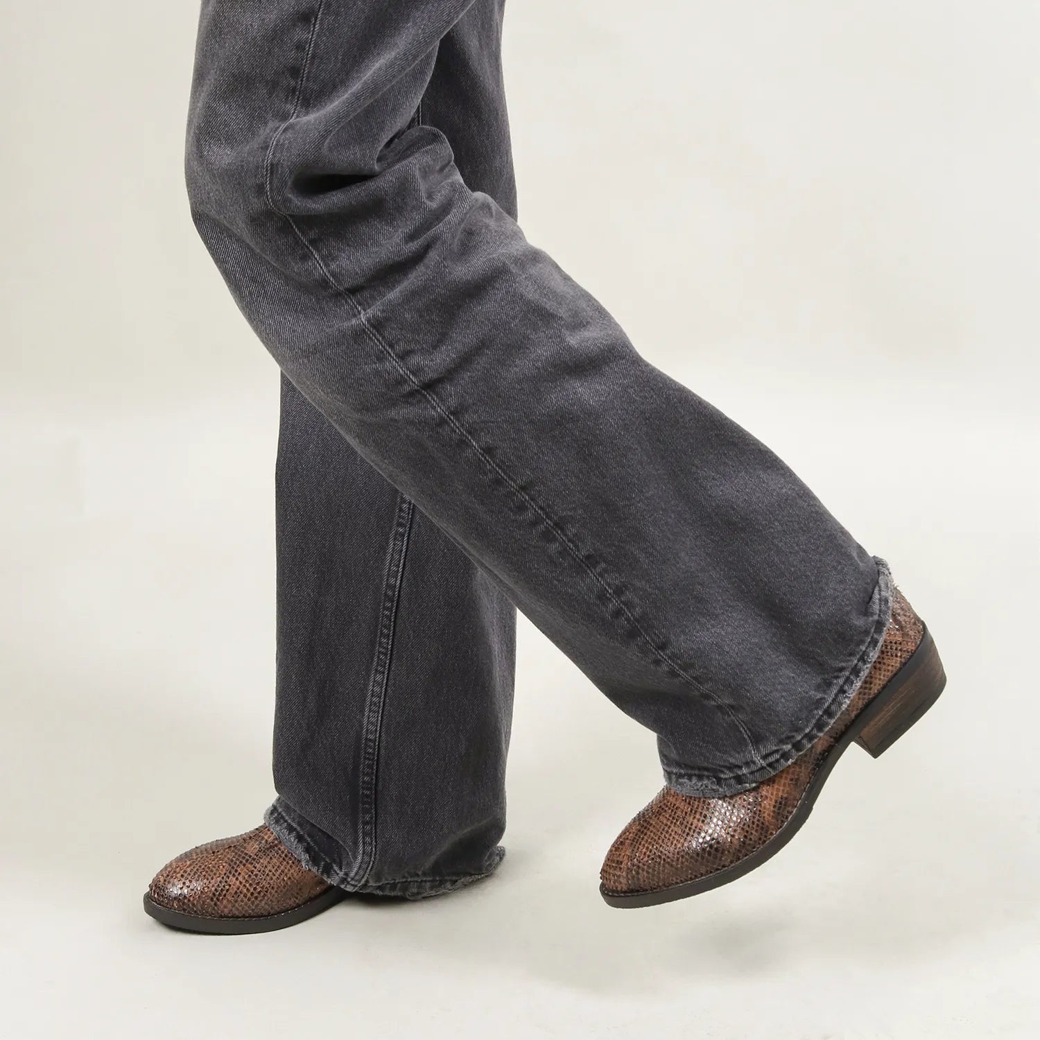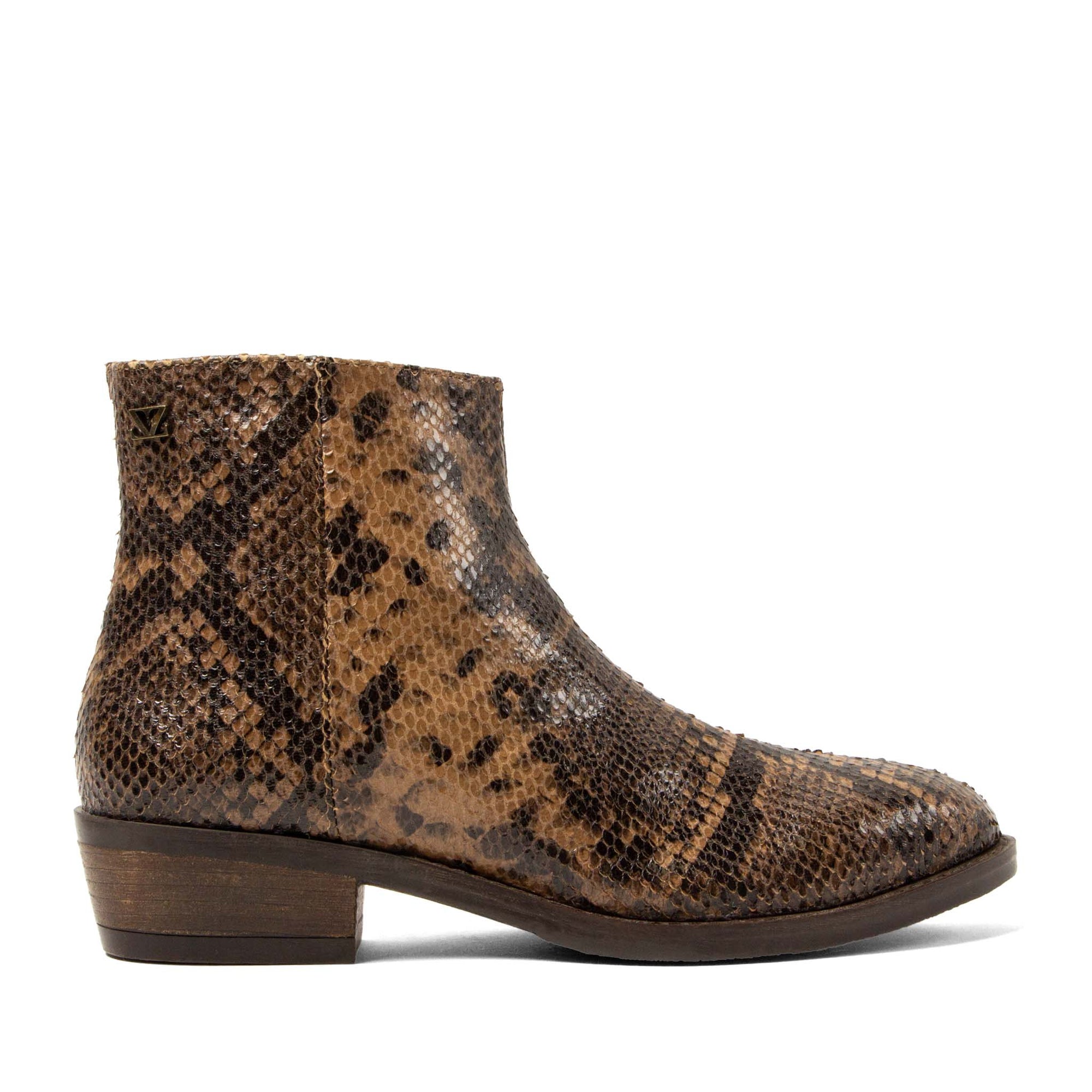 Setze ein Statement mit diesen glamourösen Stiefeletten von Lazamani. Das Leder mit realistischer Schlangenprägung passt perfekt zu den Modetrends dieser Saison. Die glänzende Oberfläche verleiht einen luxuriösen, raffinierten Look, während das Design deinem Outfit eine mutige, modische Note gibt. Dank des niedrigen Absatzes und der bequemen Passform kannst du sie den ganzen Tag mühelos tragen. Ein seitlicher Reißverschluss erleichtert das An- und Ausziehen. Kombinieren Sie sie ganz unkompliziert mit einer Skinny Jeans oder einem schwingenden Kleid – für einen Look, der so vielseitig ist wie Sie selbst.