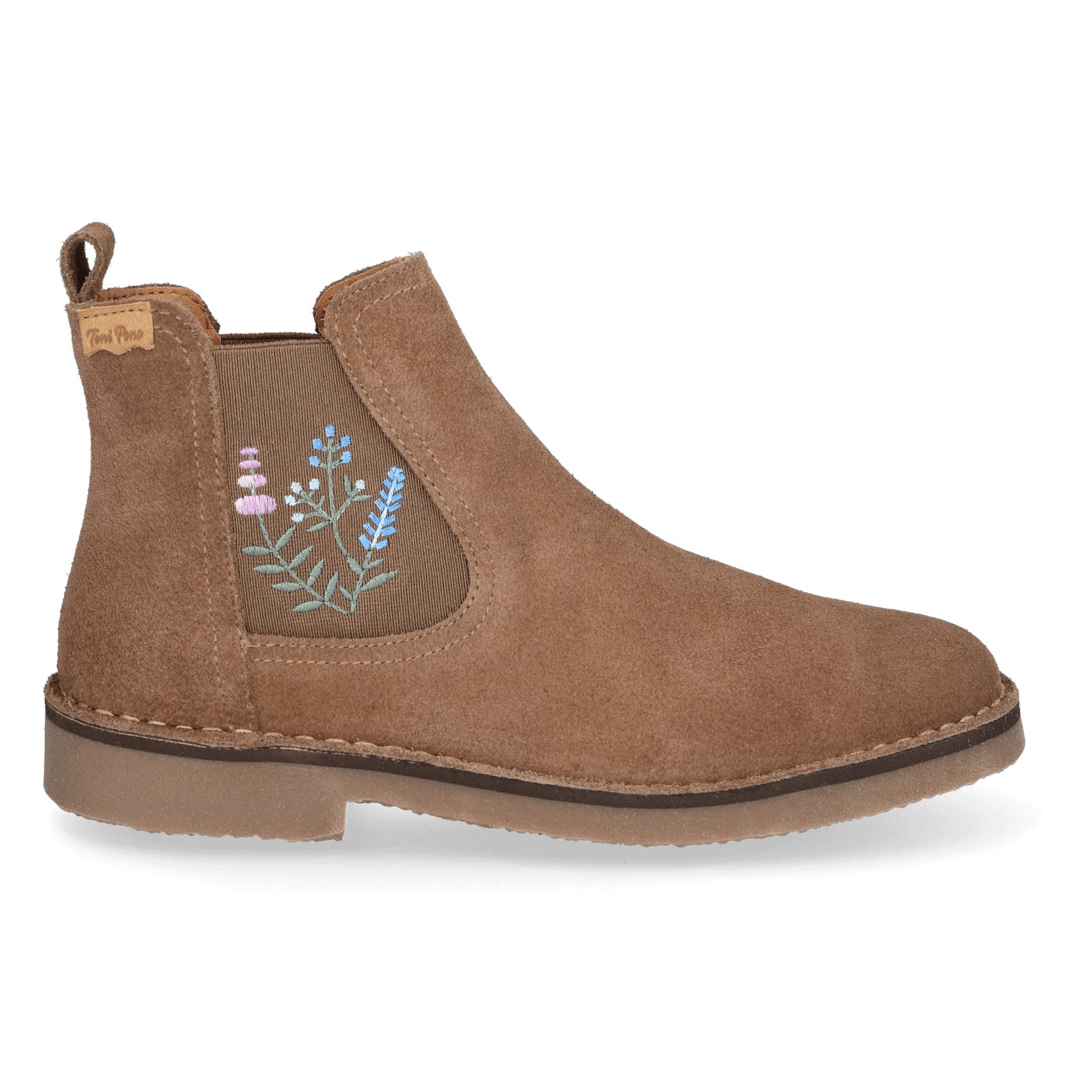 Die Bisbal sind elegante Chelsea-Boots aus der Costa Brava-Kollektion von Toni Pons. Das Obermaterial besteht aus einfarbigem Spaltleder und ist innen mit weichem Leder gefüttert. Ein schönes Detail sind die farbenfrohen Blumenmuster auf den elastischen Seiteneinsätzen – inspiriert von der Blumenpracht, wie sie entlang der Costa Brava, der Heimat von Toni Pons, zu finden ist. Die Boots lassen sich leicht an- und ausziehen und bieten den Komfort, den man von einem Schuh für den täglichen Gebrauch erwartet.