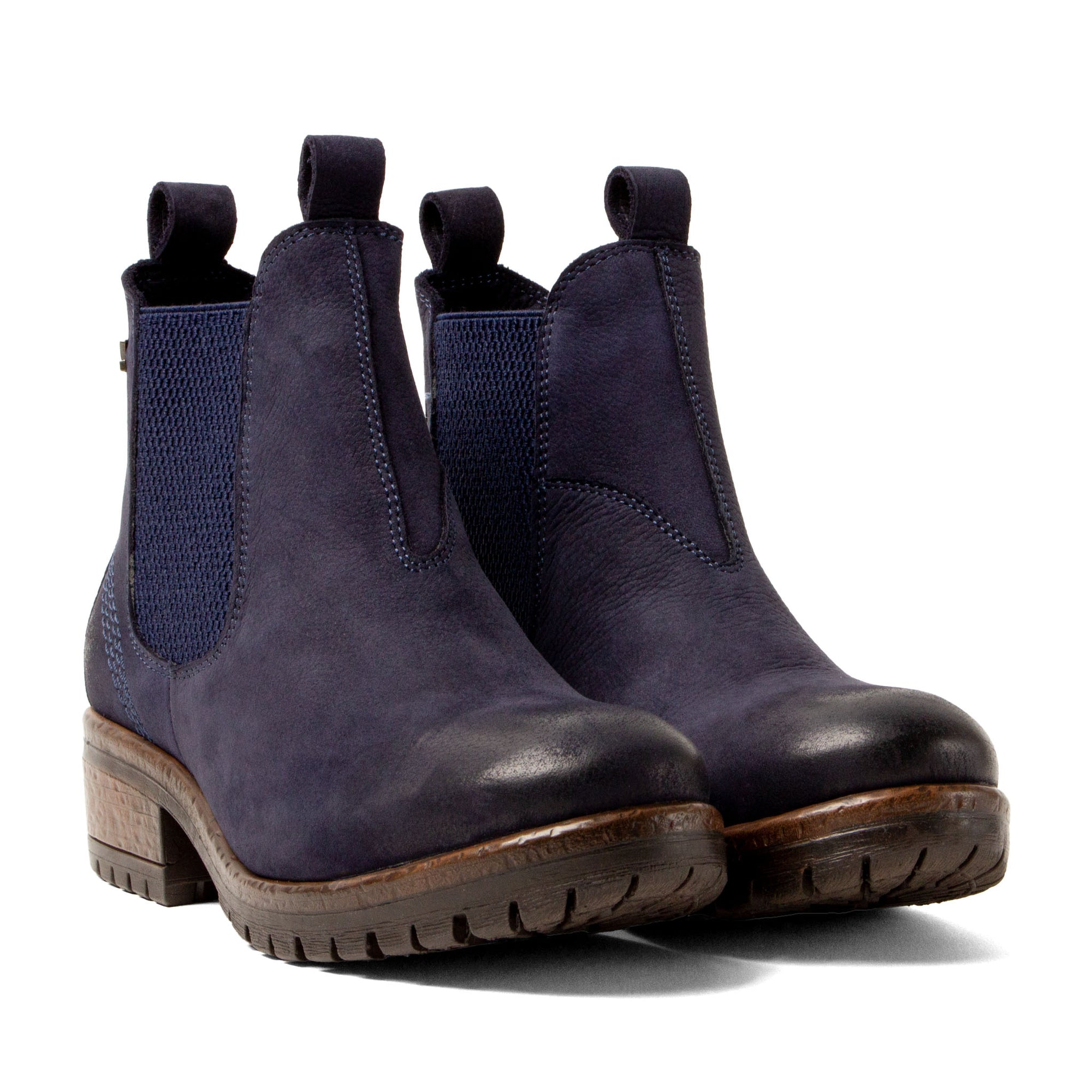 Lia Damen Leder Chelsea-Boots Jeans