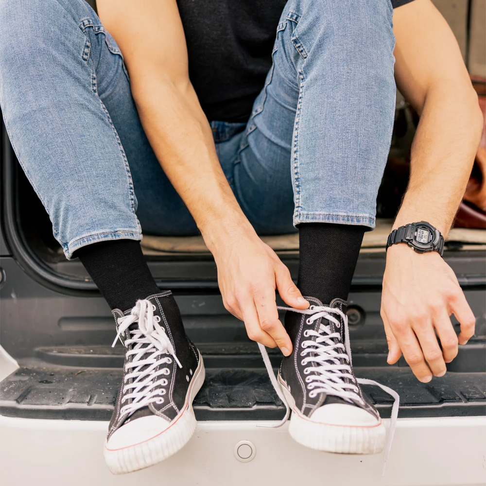 Der Sockwell Circulator ist ein modischer Kompressionsstrumpf für Herren. Die Socken bieten eine leichte Kompression von 15-20 mmHg. Damit sind es Kompressionsstrümpfe für Lifestyle und Sport und bieten unterstützenden Komfort bei längerem Stehen oder Sitzen, Sport, Reisen und mehr. Sie werden oft von Menschen verwendet, die unter müden oder schweren Beinen oder Flüssigkeitsansammlung in den Füßen und Beinen leiden. Der natürliche Materialmix aus Merinowolle und Bambusgarn sorgt für eine gute Feuchtigkeitsaufnahme und Temperaturregulierung.