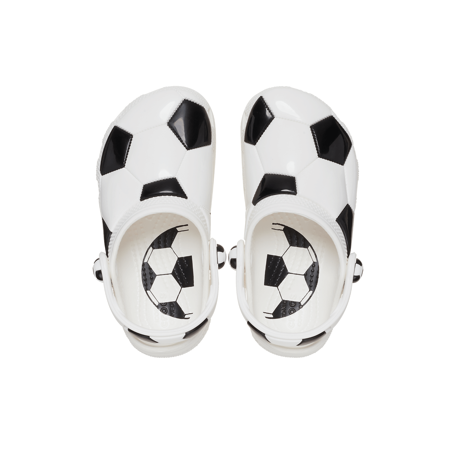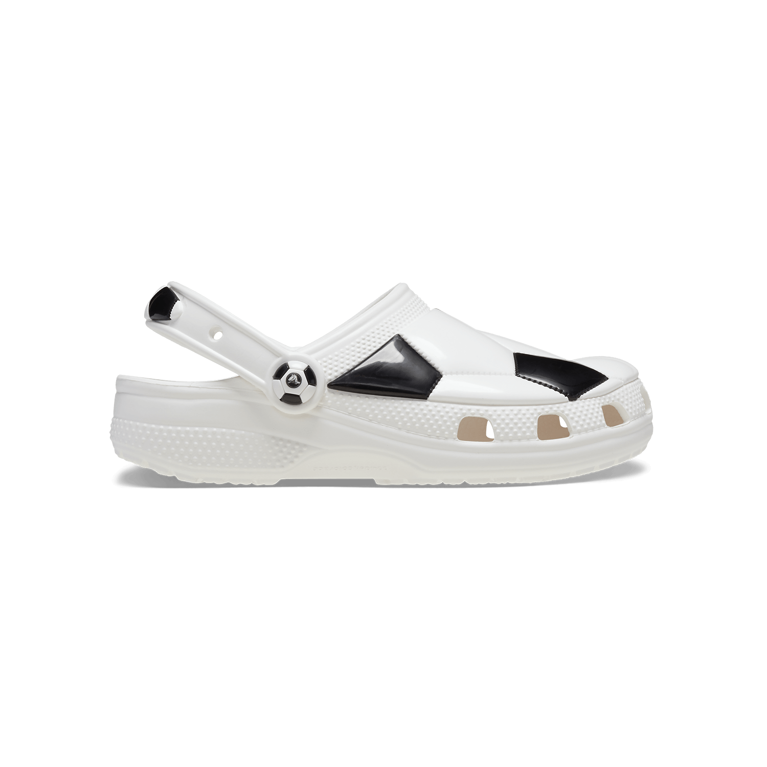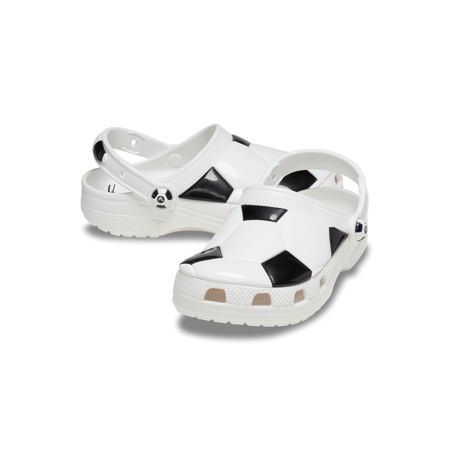 Diese besondere Version der ikonischen Toddler Clogs von Crocs ist perfekt für alle kleinen Fußballliebhaber. Das Obermaterial ist vom klassischen Schwarz-Weiß-Design eines Fußballs inspiriert – ideal, um ihre Leidenschaft für den Sport zu zeigen. Eine grafische Fußballsohle im Inneren hilft dabei, die linke und rechte Seite zu erkennen. Belüftungsöffnungen sorgen für angenehme Luftzirkulation und leiten Wasser und Schmutz ab – und bieten Platz für Jibbitz-Anstecker zur individuellen Gestaltung.