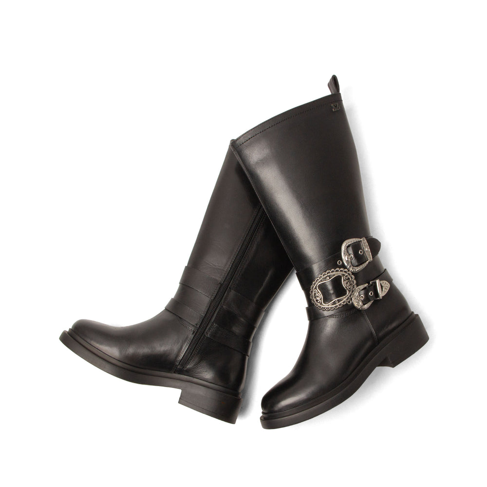 Hohe Lederstiefel mit Mix aus Zierschnallen