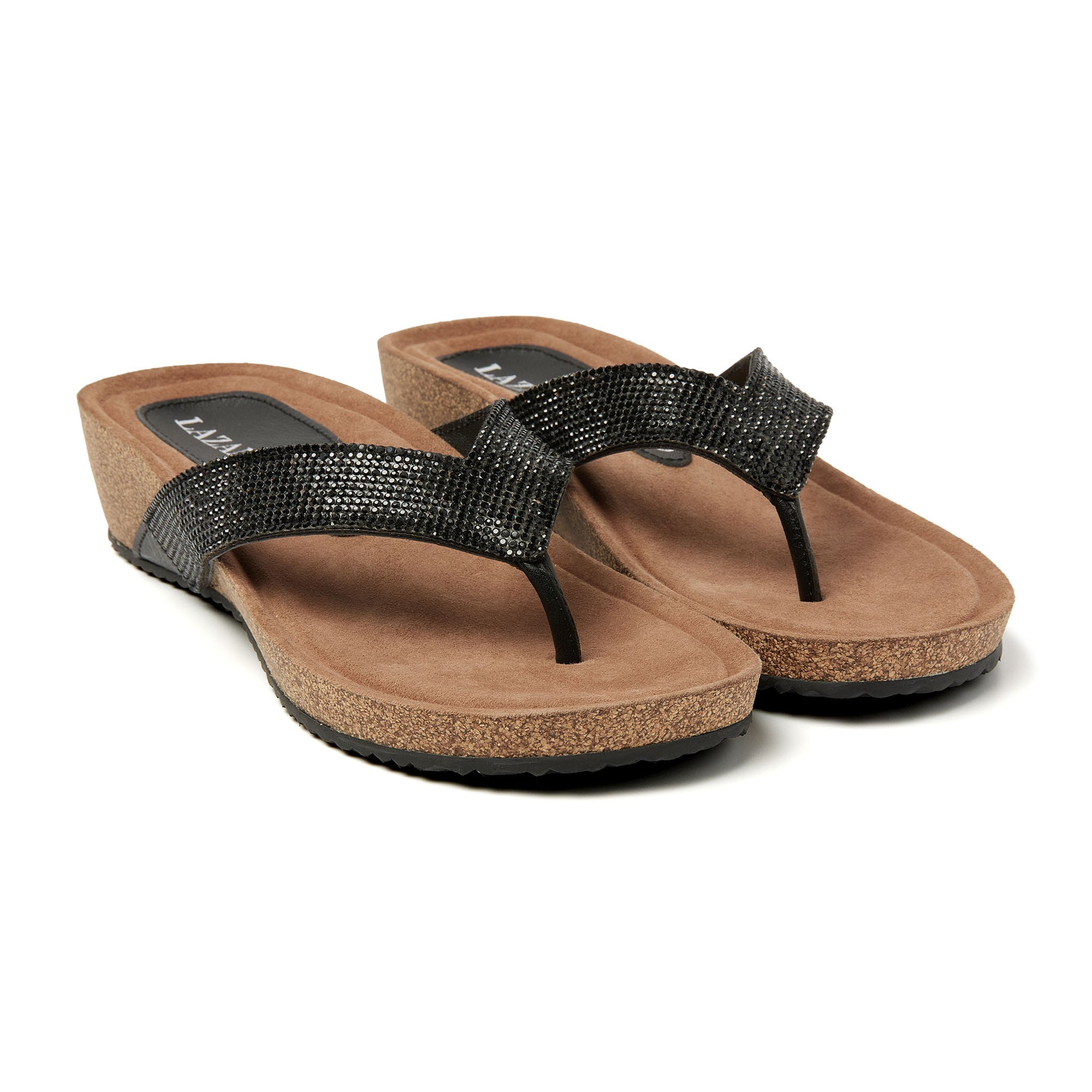 Diese Pantolette mit Keilabsatz beweist, dass Stil und Komfort Hand in Hand gehen können. Das Oberteil aus weichem Leder ist mit vielen kleinen Strasssteinchen verziert. Das Lederfutter und das weich gepolsterte, mit Wildleder gefütterte Fußbett bieten hohen Gehkomfort. Dieser Schuh trägt sich auch an den heißesten Sommertagen sehr bequem. Der 4 cm hohe Keilabsatz verleiht der Pantolette einen besonders femininen Touch. Die Zwischensohle besteht aus Kork und die Laufsohle aus Gummi sorgt beim Gehen für Griffigkeit und Stabilität.