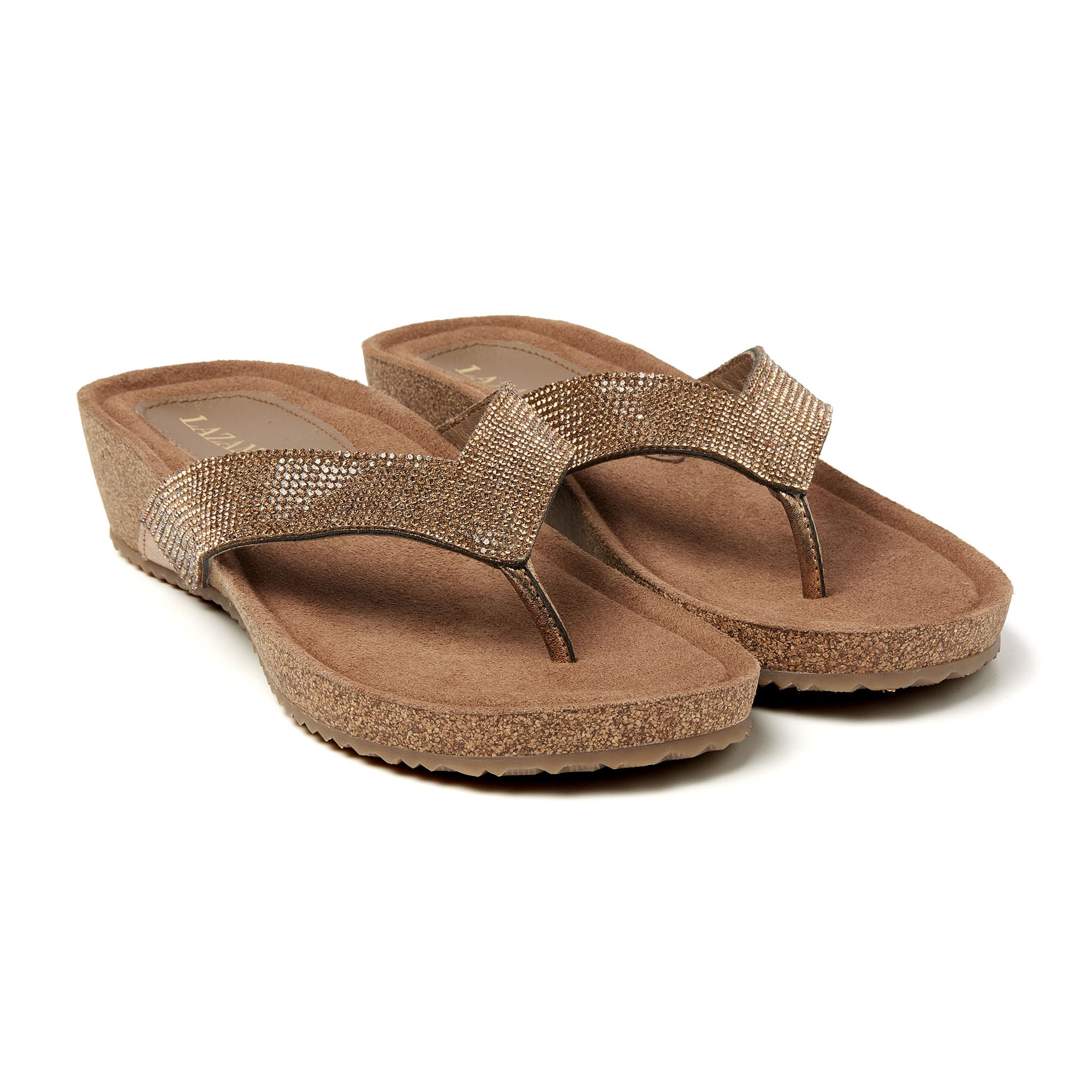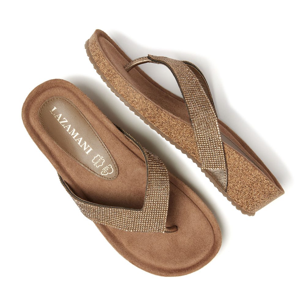 Diese Pantolette mit Keilabsatz beweist, dass Stil und Komfort Hand in Hand gehen können. Das Oberteil aus weichem Leder ist mit vielen kleinen Strasssteinchen verziert. Das Lederfutter und das weich gepolsterte, mit Wildleder gefütterte Fußbett bieten hohen Gehkomfort. Dieser Schuh trägt sich auch an den heißesten Sommertagen sehr bequem. Der 4 cm hohe Keilabsatz verleiht der Pantolette einen besonders femininen Touch. Die Zwischensohle besteht aus Kork und die Laufsohle aus Gummi sorgt beim Gehen für Griffigkeit und Stabilität.
