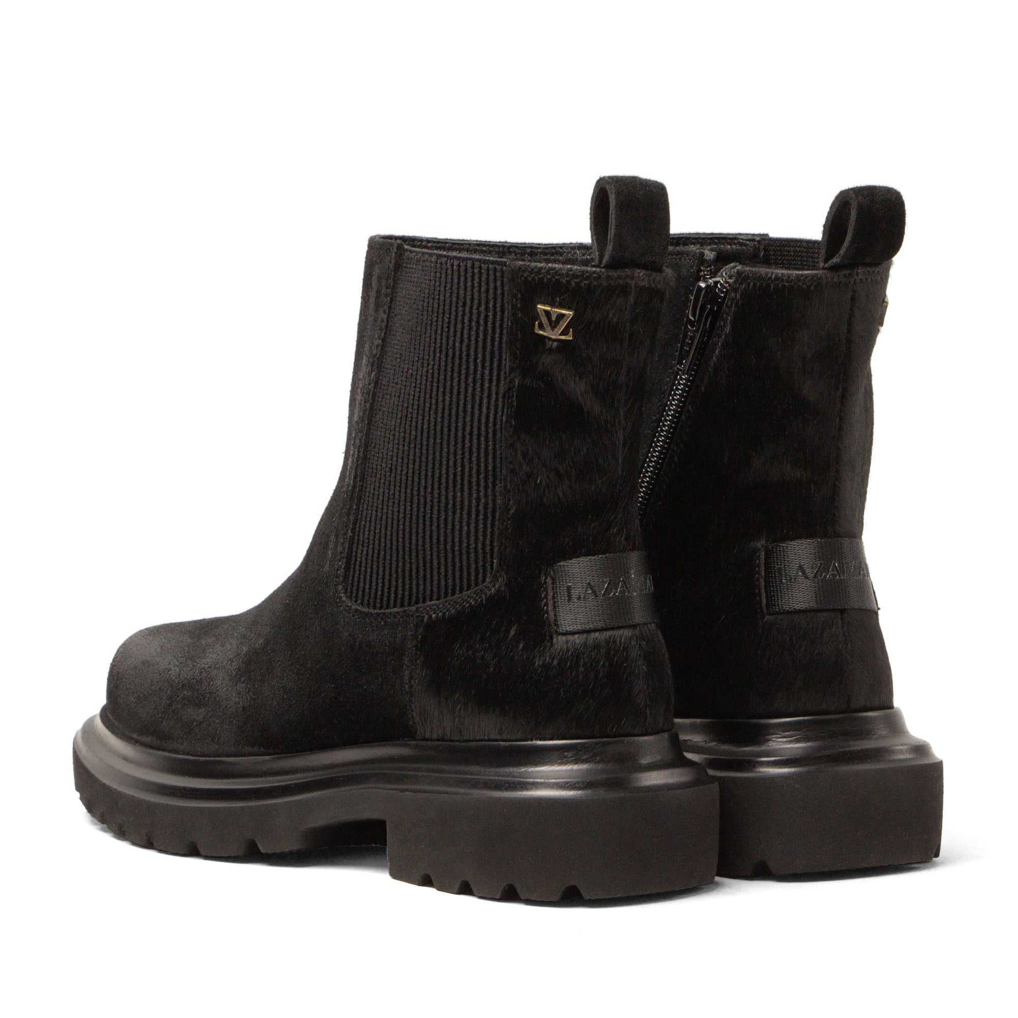 Diese schwarzen Damenboots sind alles andere als basic. Das Obermaterial kombiniert weiches Veloursleder mit Ponyfell an der Ferse – robust genug für einen edgy Look, aber minimalistisch genug, um zu allem zu passen. Dank Reißverschluss auf der einen Seite und elastischem Einsatz auf der anderen schlüpfst du ganz einfach hinein – für einen Style, der Komfort und Coolness vereint. Trage sie zur Jeans mit Oversized-Blazer für einen lässigen City-Look oder zum Midikleid für einen stilvollen Kontrast. Von morgens bis abends tragbar – echte Allrounder, die in deiner Wintergarderobe nicht fehlen dürfen.