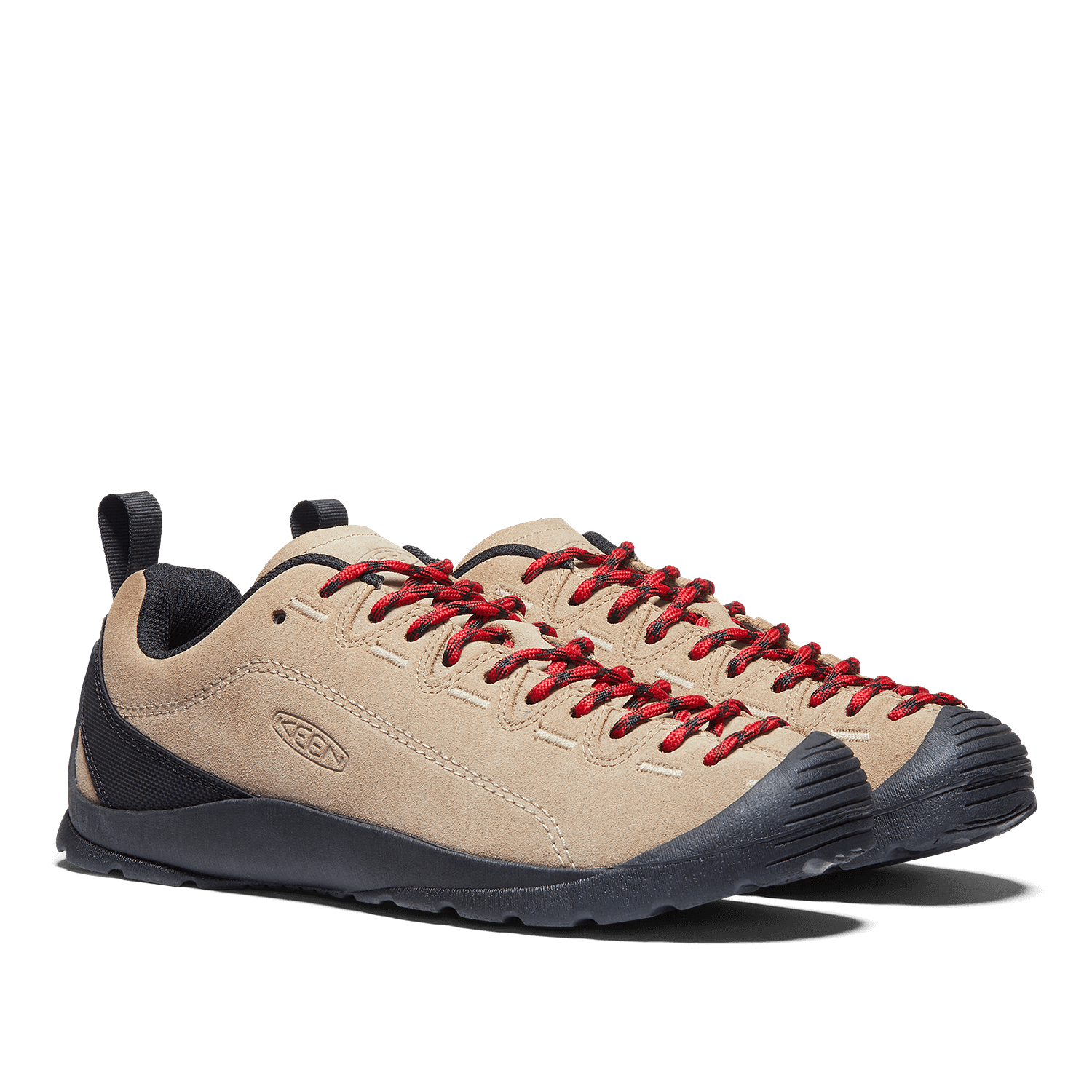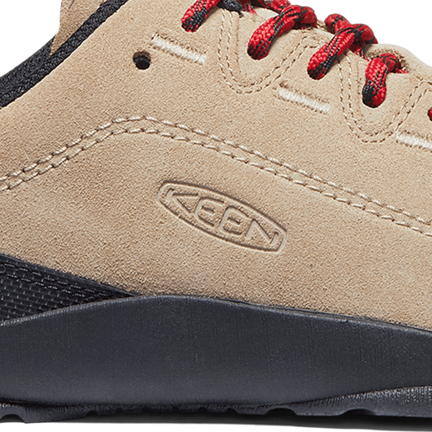 Lass dich vom Design der Jasper Damensneaker von KEEN überraschen. Auf den ersten Blick wirken sie wie lässige Sneaker, doch sie bieten die Leistung eines Outdoorschuhs. Perfekt für Spaziergänge durch die Stadt sowie Touren auf unebenem Gelände. Die Schuhe sind mit einem herausnehmbaren Schaumstoff-Fußbett, einer atmungsaktiven Mesh-Fütterung, die Gerüche neutralisiert, und einer flachen Gummisohle ausgestattet, die für zuverlässigen Halt und ein hervorragendes Bodengefühl sorgt. Das Obermaterial besteht aus hochwertigem Wildleder von einer LWG-zertifizierten Gerberei. Ein zusätzliches Schnürsenkelpaar in einer anderen Farbe wird mitgeliefert, sodass du im Aussehen variieren kannst. Dank der weit nach vorn reichenden Schnürung ist eine optimale Passform garantiert.