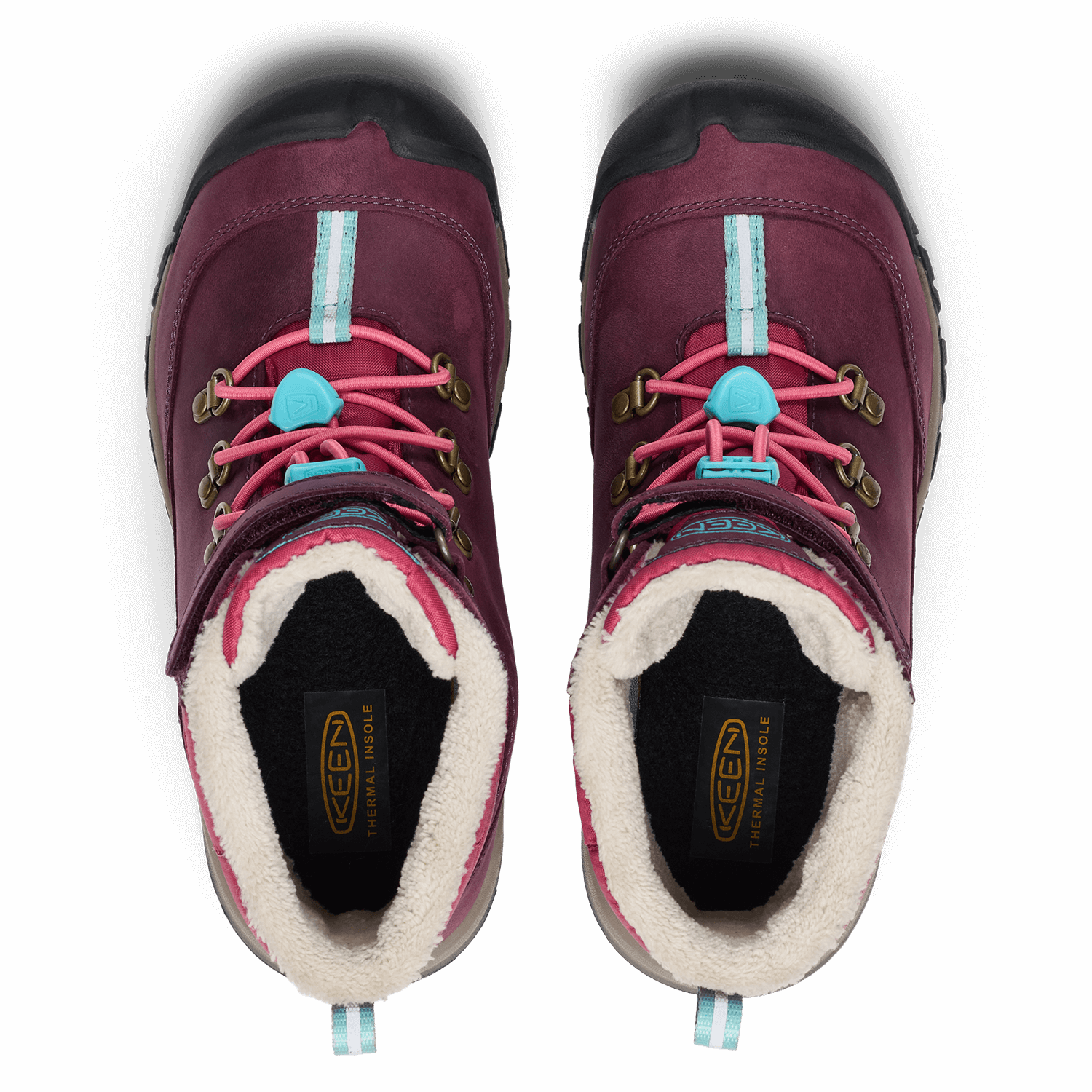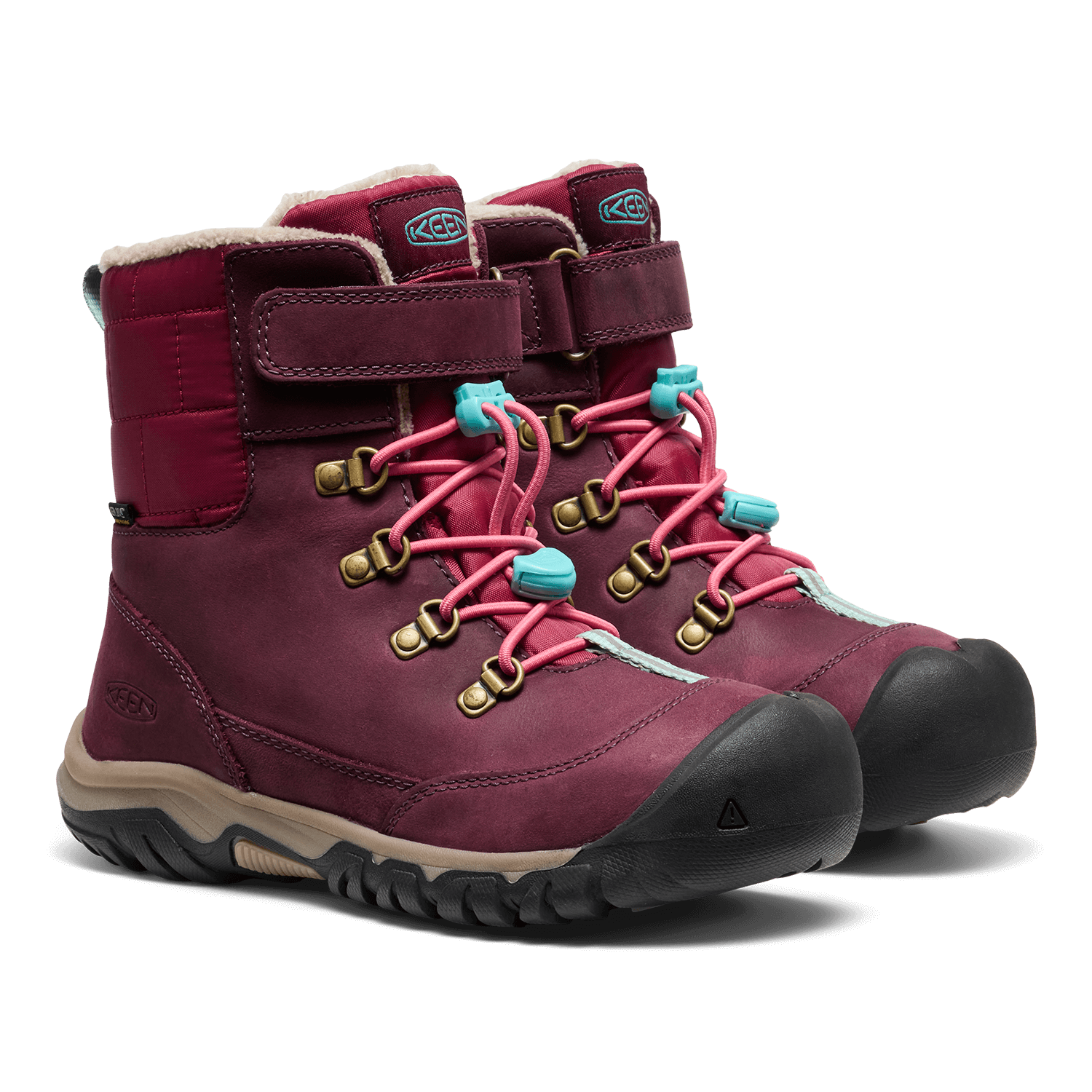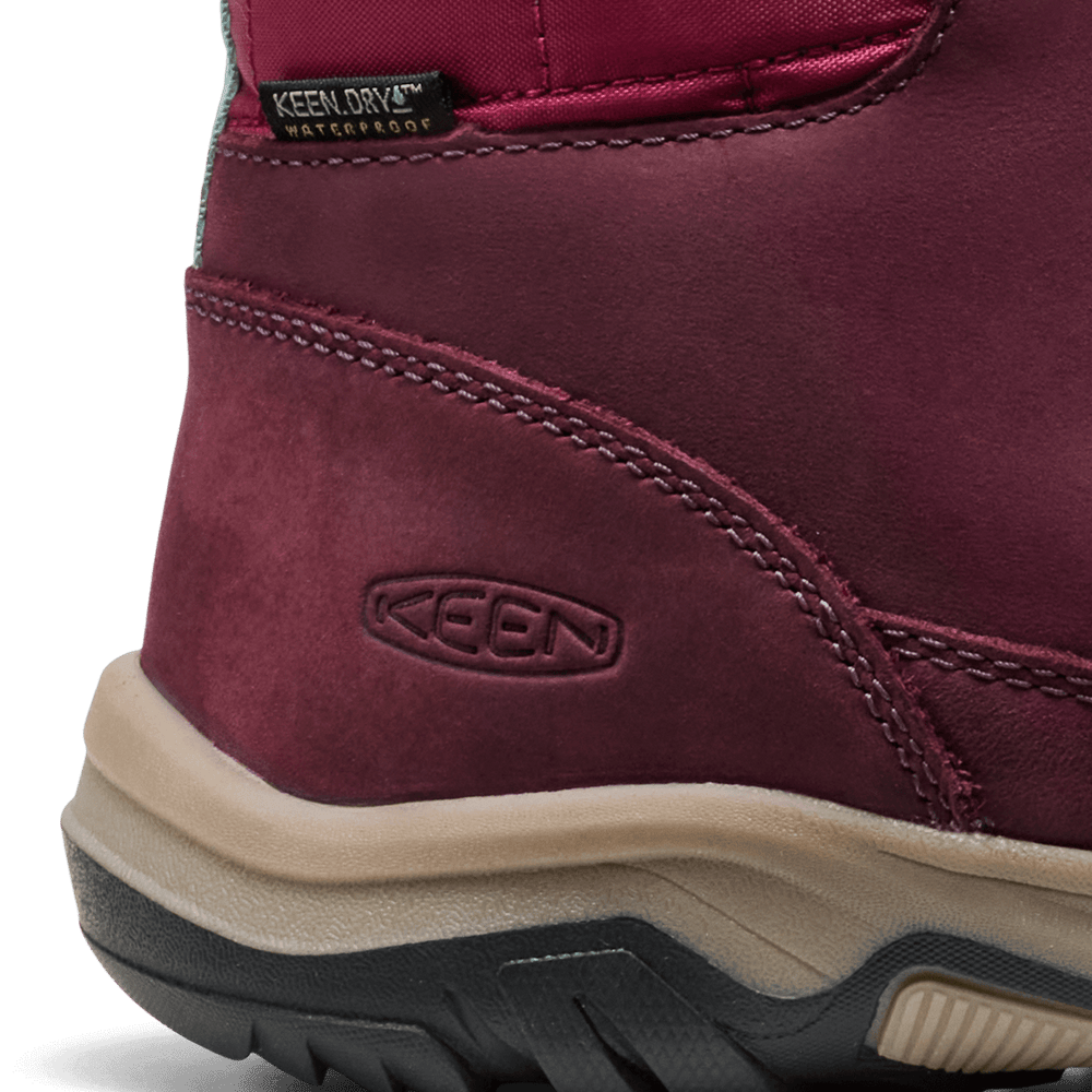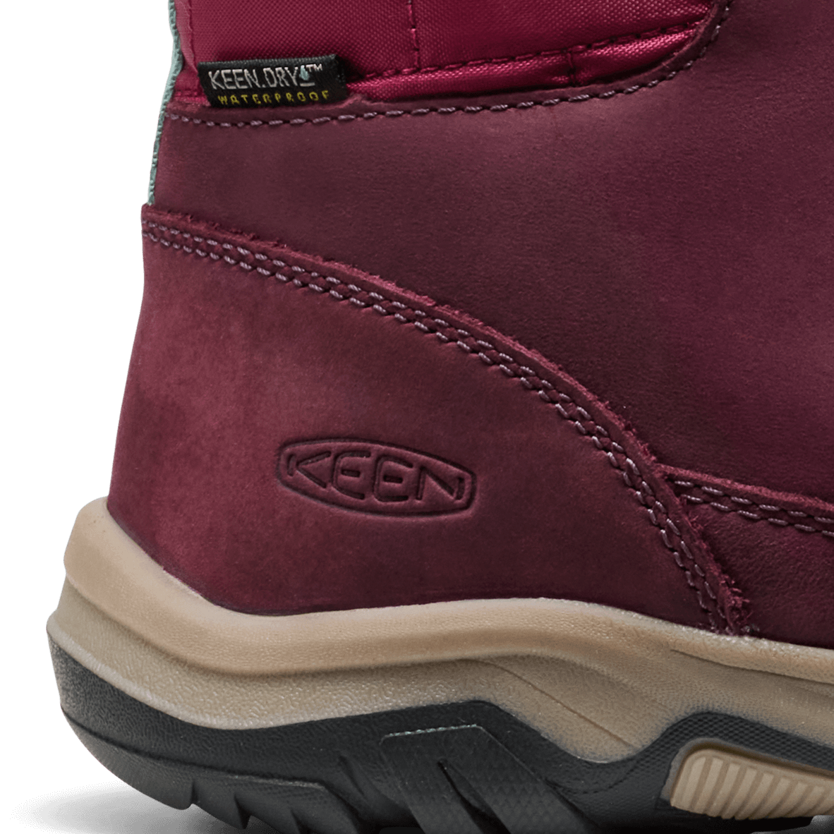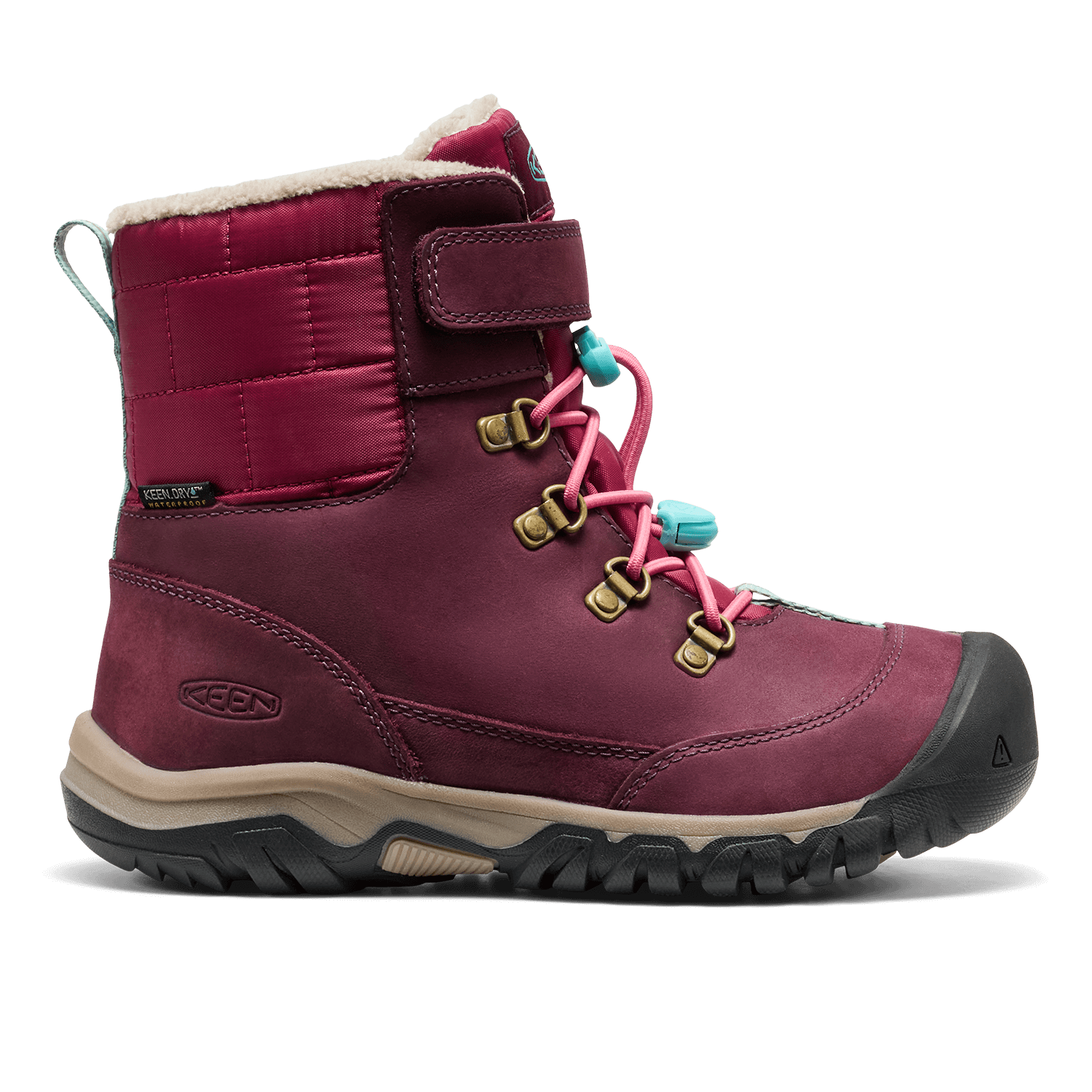 Mit den Kanibou Winterboots von KEEN sind Kinderfüße bestens gegen Schnee und Kälte geschützt. Dank robuster Profilsohle und 200 g KEEN.WARM-Isolierung (bis –25 °C) können kleine Abenteurer sicher und warm durch den Winter stapfen. Die thermische Innensohle speichert Wärme, während das atmungsaktive, wasserdichte KEEN.DRY-Membran Feuchtigkeit zuverlässig draußen hält. Das Obermaterial besteht aus wasserabweisendem Premiumleder (LWG-zertifiziert) und Textil, kombiniert mit einem kuscheligen Fleecefutter. Eine PFAS-freie Beschichtung sorgt für umweltfreundlichen Nässeschutz.