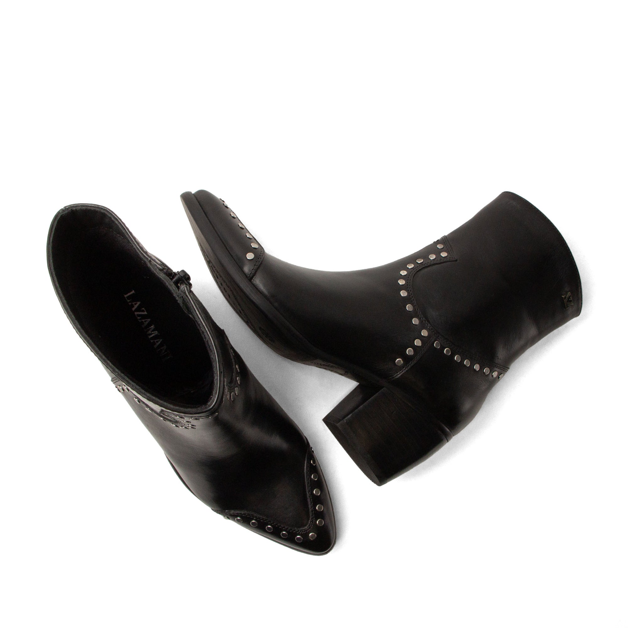 Elegant mit einem Hauch Rock-Chic – diese Stiefeletten von Lazamani sind für Frauen gemacht, die Stil mit Charakter lieben. Das glatte Leder bildet eine luxuriöse Basis, während silberfarbene Nieten verspielt entlang der Linien platziert sind und so einen dezenten, markanten Effekt erzeugen. Der 6 cm hohe Blockabsatz verleiht dir ein wenig zusätzliche Höhe, ohne auf Komfort zu verzichten. Die spitze Kappe sorgt für eine feminine und raffinierte Ausstrahlung. Kombiniere sie mit Skinny Jeans und Lederjacke für einen coolen Look oder trage sie zu einem fließenden Kleid für einen stilvollen Kontrast.