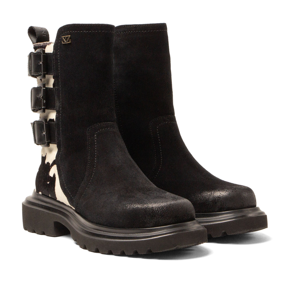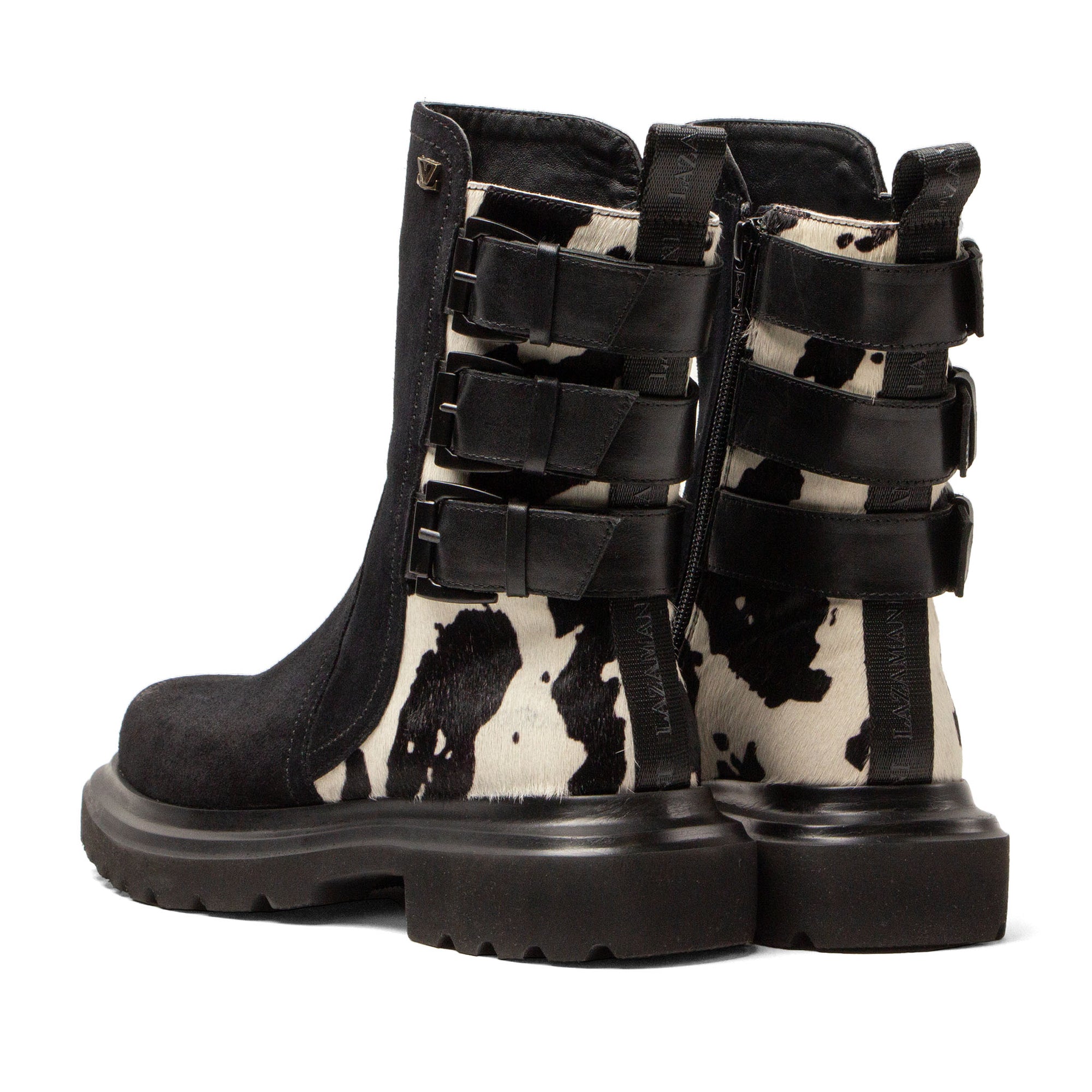 Auffallen erwünscht! Diese markanten Boots von Lazamani sind alles andere als gewöhnlich. Der knöchelhohe Stiefel mit verspieltem Kuhfell-Print zieht garantiert alle Blicke auf sich. Drei Lederriemen mit Schnallen auf der Rückseite sorgen für einen edgy Touch, während das weiche Veloursleder auf der Vorderseite einen femininen Ausgleich schafft. Dank des Reißverschlusses lassen sie sich ganz einfach anziehen. Die chunky Sohle verleiht Charakter, bleibt dabei aber angenehm leicht. Kombiniere sie mit einer Lederleggings oder einem oversized Sweaterkleid – und lass dein Outfit für sich sprechen.