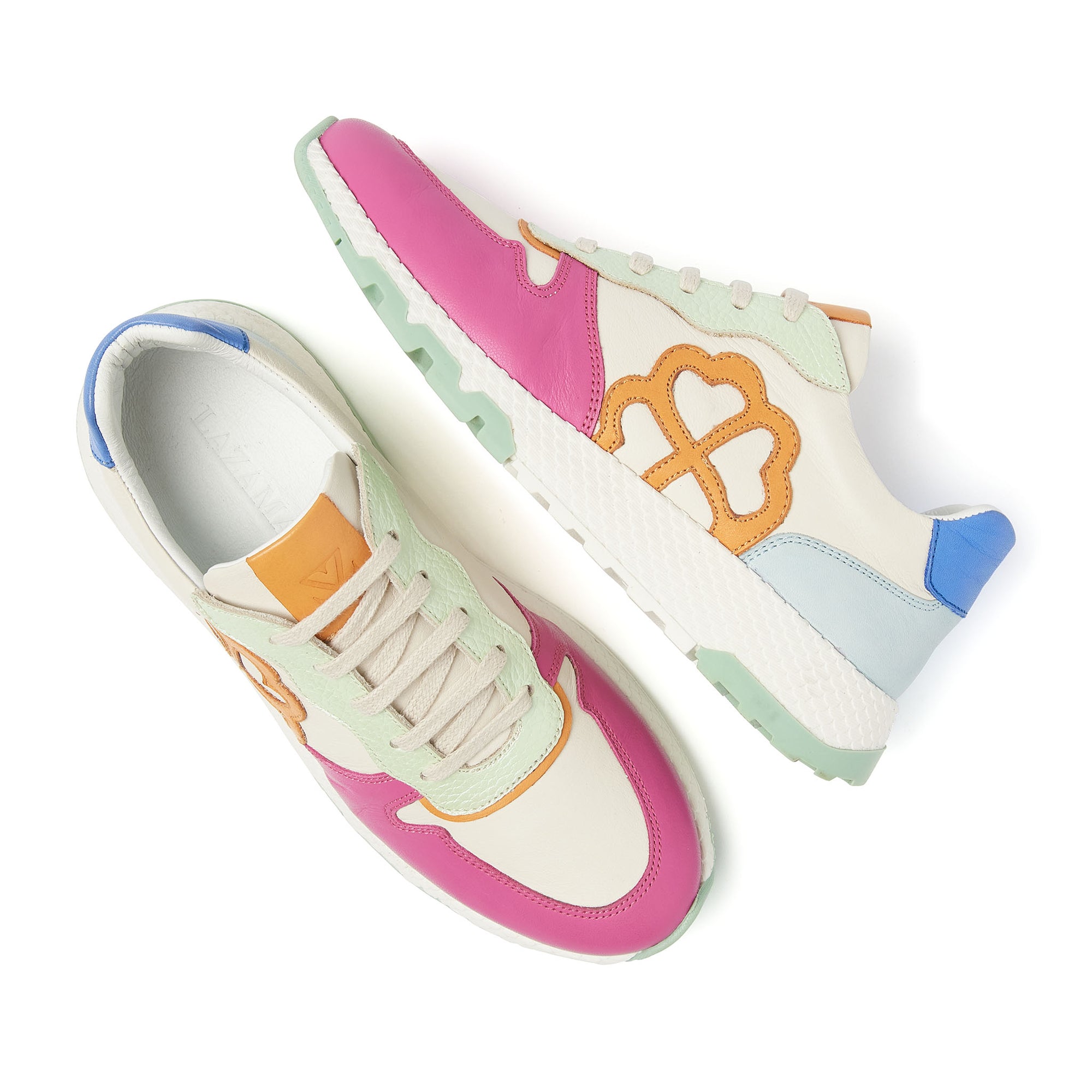 Gehen Sie stilvoll durch den Sommer mit diesen bequemen Sneakern von Lazamani. Sie sind perfekt für jeden Städtetrip und vielseitig für den täglichen Gebrauch. Die Sneaker sind aus Leder gefertigt und mit schönen Details versehen. Die Lazamani-Signatur ist sofort durch die Verwendung von Farbe und verschiedenen Ledersorten erkennbar. Sie lassen sich stilvoll mit vielen verschiedenen Outfits kombinieren, von robusten Jeans bis zu einem sommerlichen Kleid.