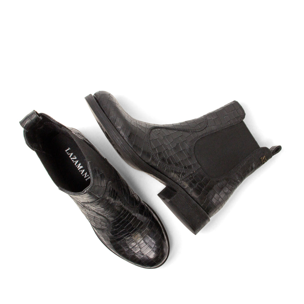 Diese Chelsea-Boots von Lazamani vereinen zeitlose Eleganz mit einer markanten Note. Das Leder im Kroko-Design verleiht ihnen eine luxuriöse Ausstrahlung und macht sie spannender als das klassische Modell. Die elastischen Seiteneinsätze sorgen für einen mühelosen Einstieg, während der niedrige Absatz und die bequeme Passform sie perfekt für den täglichen Gebrauch machen. Ob zu Jeans und Blazer für einen city-chicen Look oder zu einem Lederrock für einen mutigen Twist – diese Boots runden jedes Outfit stilvoll ab.
