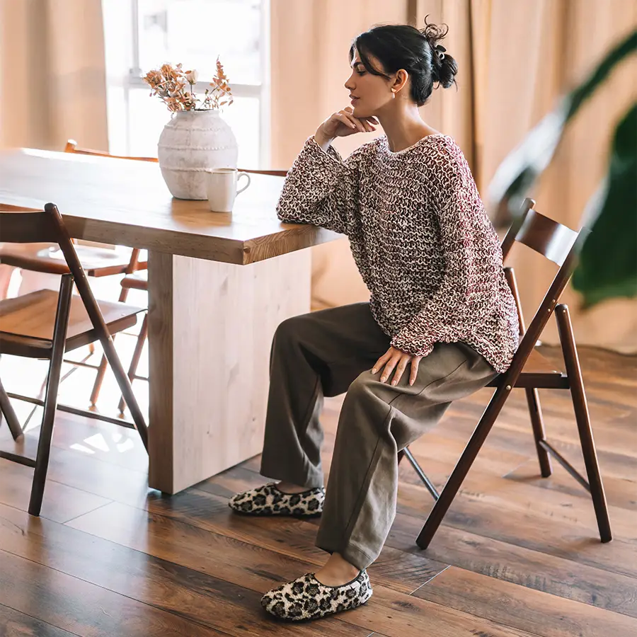 Auf der Suche nach behaglich warmen Hausschuhen mit einem einfachen Einstieg? Diese Marta-SH Pantoffeln von Toni Pons sind dann deine ideale Wahl! Sie sind aus Textil mit einem Teddy-Look (Mit Tierdruck) gefertigt und innen mit einem herrlich weichen und atmungsaktiven Textil gefüttert. Der Schlupfschuh passt sich leicht dem Fuß an und sitzt so bequem, dass du sie fast nicht mehr ausziehen möchtest. Glücklicherweise kannst du sie auch draußen tragen, wenn du musst, dank der robusten Gummisohle mit guten rutschfesten Eigenschaften auf glatten Böden im Haus. Lass sie nicht zu schmutzig werden, da wir davon abraten, sie in der Waschmaschine zu waschen. Die Innensohle kann herausgenommen werden, um sie zum Beispiel zu lüften oder wenn du deine eigenen Einlegesohlen verwenden möchtest.