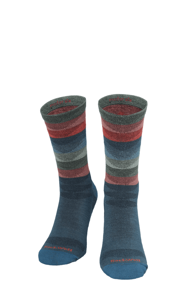 Diese Peaks für Damen sind mittelhohe Wandersocken mit leichter Kompression von 15-20 mmHg. Sockwell Wandersocken haben keine fühlbaren Nähte und verfügen über ein etwas dickeres, gestricktes Fußbett für zusätzliche Dämpfung und Halt in den Wanderschuhen. Der hochwertige Materialmix aus Merinowolle und Bamus sorgt für gute feuchtigkeitsabsorbierende und temperaturregulierende Eigenschaften. Die Wandersocken bieten unterstützenden Komfort bei langen Spaziergängen, Rucksacktouren oder Wanderungen. Darüber hinaus werden sie getragen, um das Risiko von Blasenbildung zu verringern. Dank der Wolle in den Socken trocknen sie schnell wieder und bleiben mehrere Tage lang frisch, ohne dass Sie sie zwischendurch waschen müssen.