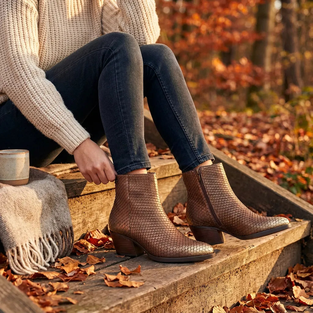 Statement-Piece und unverkennbar stilvoll – diese Stiefeletten von Lazamani ziehen alle Blicke auf sich. Das besondere Leder mit 3D-Schlangenstruktur verleiht eine luxuriöse Textur und einen glamourösen Metallic-Schimmer. Die spitze Kappe und der Blockabsatz sorgen für eine elegante, zugleich kraftvolle Ausstrahlung – perfekt, um deinen Look auf das nächste Level zu bringen. Dank des Reißverschlusses schlüpfst du mühelos hinein und wieder heraus, während das Lederfußbett und das weiche Innenfutter bei jedem Schritt Komfort bieten.