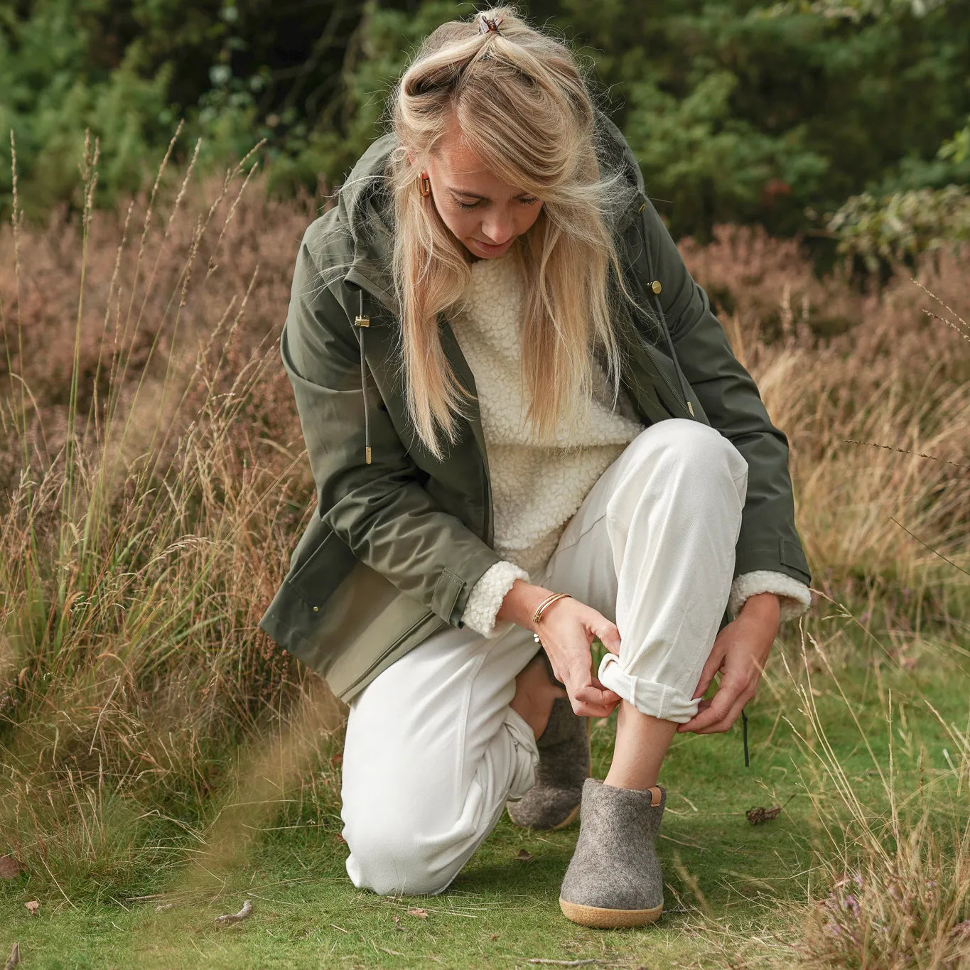 Jeder Tofvel wird in Nepal auf sozial verantwortliche und authentische Weise von Hand gefertigt. Das Obermaterial besteht vollständig aus 100 % natürlichem Wollfilz und verfügt über eine integrierte Sohle für zusätzlichen Komfort. Diese Rabara Maha hat eine honigfarbene Gummilaufsohle. Die strapazierfähige Sohle macht die Hausschuhe auch für den Außenbereich geeignet. Sie sind ideal für den Innen- und Außenbereich – rund ums Haus, auf dem Campingplatz oder in einer Berghütte – wenn du den Komfort von Pantoffeln suchst, um deine Füße warm zu halten. Dank des natürlichen Wollfilzes aus Schafwolle haben die Hausschuhe mehrere besondere Eigenschaften. Sie sind atmungsaktiv, halten deine Füße im Winter angenehm warm, im Sommer kühl und verhindern unangenehme Gerüche.