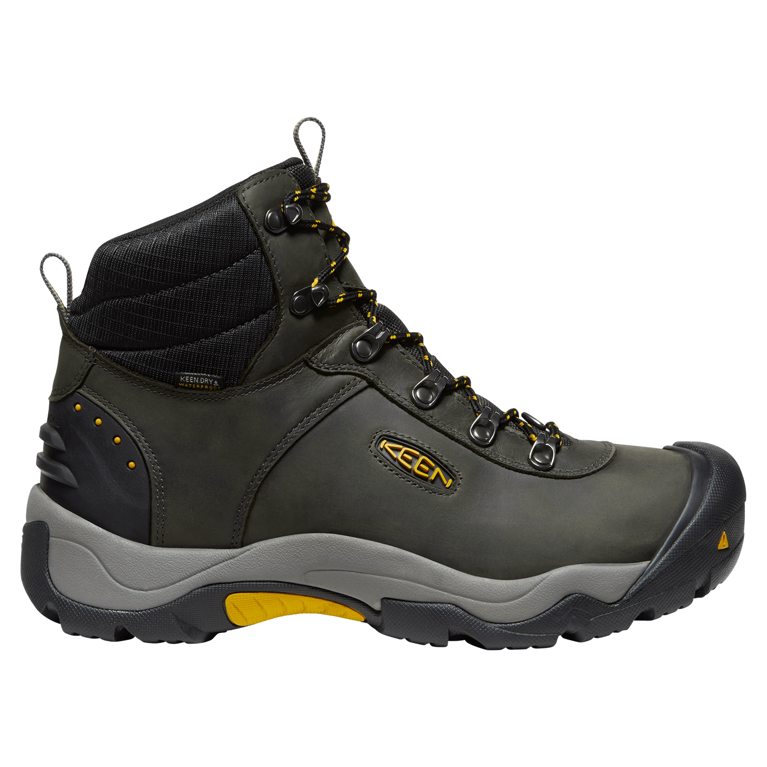 Mach Winterwanderungen noch schöner. Die Revel III Winter Boots für Herren sind mit einer hochwertigen Isolierung ausgestattet, die deine Füße auch bei eisigen Temperaturen warm hält. Die speziell entwickelte Gummisohle mit 5 mm Profil sorgt für sicheren Halt auf Schnee und Eis. Diese robusten Bergstiefel sind für winterliche Bedingungen und Abenteuer im Gebirge gemacht. Mit 200 g KEEN.WARM-Isolation – hergestellt aus recyceltem PET – und wärmespeichernden Materialien unter der Fußsohle bieten sie zuverlässigen Schutz bis –32 °C. Das Obermaterial aus wasserabweisendem Premiumleder und Performance-Mesh sorgt für langanhaltenden Schutz, während die verstärkte Zehenkappe deine Zehen vor Stößen schützt. Dank des KEEN.DRY-Membrans bleibt Feuchtigkeit draußen, während Schweiß entweichen kann – so bleiben deine Füße angenehm trocken und atmungsaktiv.
