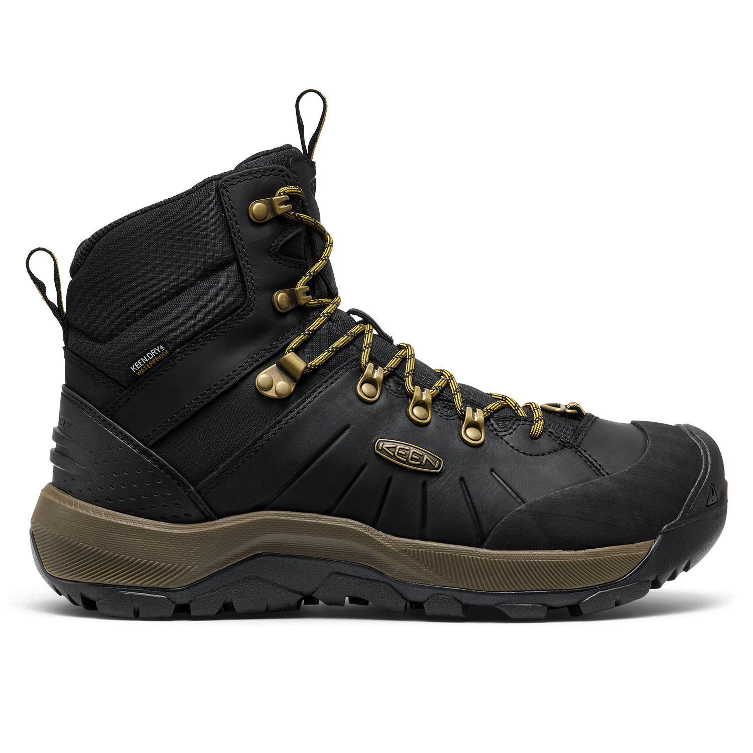 Die Revel IV Polar Wanderboots halten deine Füße selbst an den kältesten Tagen warm und trocken – stundenlang. Dank der robusten Konstruktion bieten sie sicheren Halt im Schnee und auf vereisten Untergründen. Ausgestattet mit 200 g KEEN.WARM-Isolation aus recyceltem PET und wärmespeichernden Materialien unter der Fußsohle schützen die halbhohe Boots zuverlässig bis zu -32 °C. Die KEEN.POLAR TRACTION-Laufsohle sorgt für außergewöhnlichen Grip auf Schnee und Eis. Für zusätzliche Stabilität – ohne unnötiges Gewicht – ist eine Stabilitätsplatte integriert, während die leichte Zwischensohle aus komprimiertem Schaum optimale Dämpfung bei jedem Schritt bietet. Das Obermaterial besteht aus wasserabweisendem Premiumleder und Performance-Mesh für langanhaltenden Schutz. Eine robuste Zehenkappe schützt deine Zehen vor Stößen. Durch das KEEN.DRY-Membran bleibt Nässe draußen, während Feuchtigkeit von innen entweichen kann – so bleiben deine Füße stets angenehm trocken und atmungsaktiv.