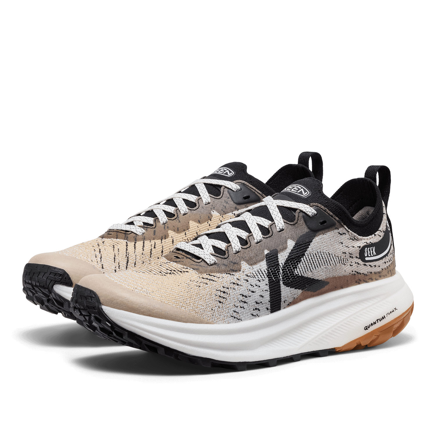 Mit dem Seek von KEEN läufst du mühelos von Asphalt über Sandwege bis hin zu anspruchsvollen Bergtrails. Dieser Trailrunningschuh ist äußerst wendig, dämpfend und langlebig. Schon beim Anziehen spürst du, warum er so beliebt ist – und nach der ersten Lauf- oder Trailrunde willst du ihn nicht mehr ausziehen. Dank der typischen KEEN-Passform mit etwas breiterem Vorfuß erlebst du sofortigen Komfort, während die hochwertige QuantumFoamX-Zwischensohle für reaktive Dämpfung und federnden Laufkomfort bei jedem Schritt sorgt. Das ultrarobuste Obermaterial aus Performance-Textil und die verstärkte Zehenkappe bieten zuverlässigen Schutz und Haltbarkeit. Unter den Füßen garantiert die KEEN.ALL-TERRAIN-Gummilaufsohle mit 4 mm tiefem, multidirektionalem Profil sicheren Grip – sowohl auf befestigten Straßen als auch auf unwegsamen Trails. Ein praktisches Stretchfach hält die Schnürsenkel fest, selbst bei schnellen Richtungswechseln oder technischen Passagen. Kurz gesagt: stilvoller Komfort, bereit für jedes Abenteuer – egal, ob du entspannt läufst oder das Tempo erhöhst.