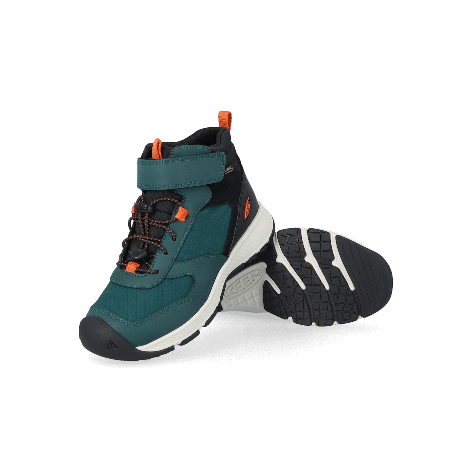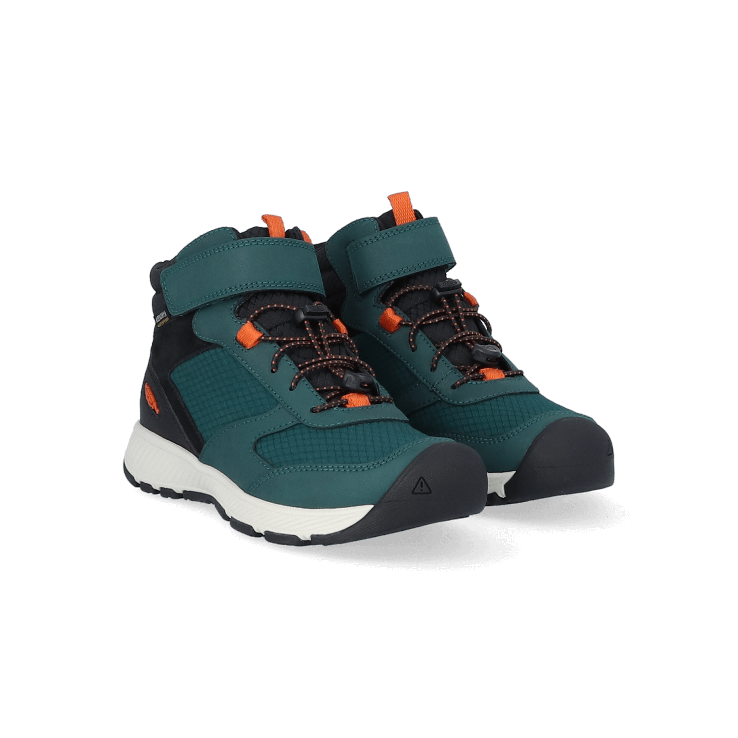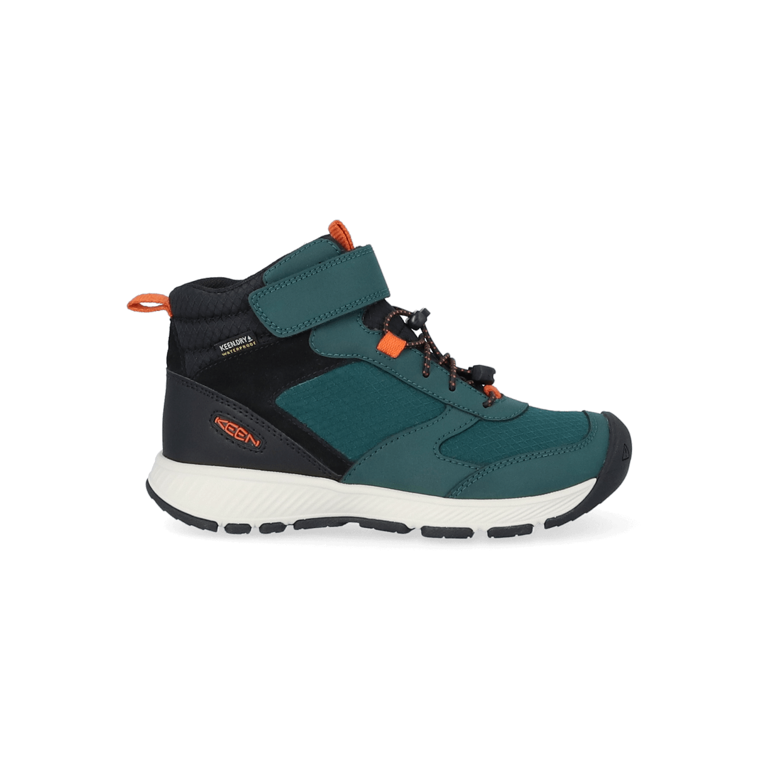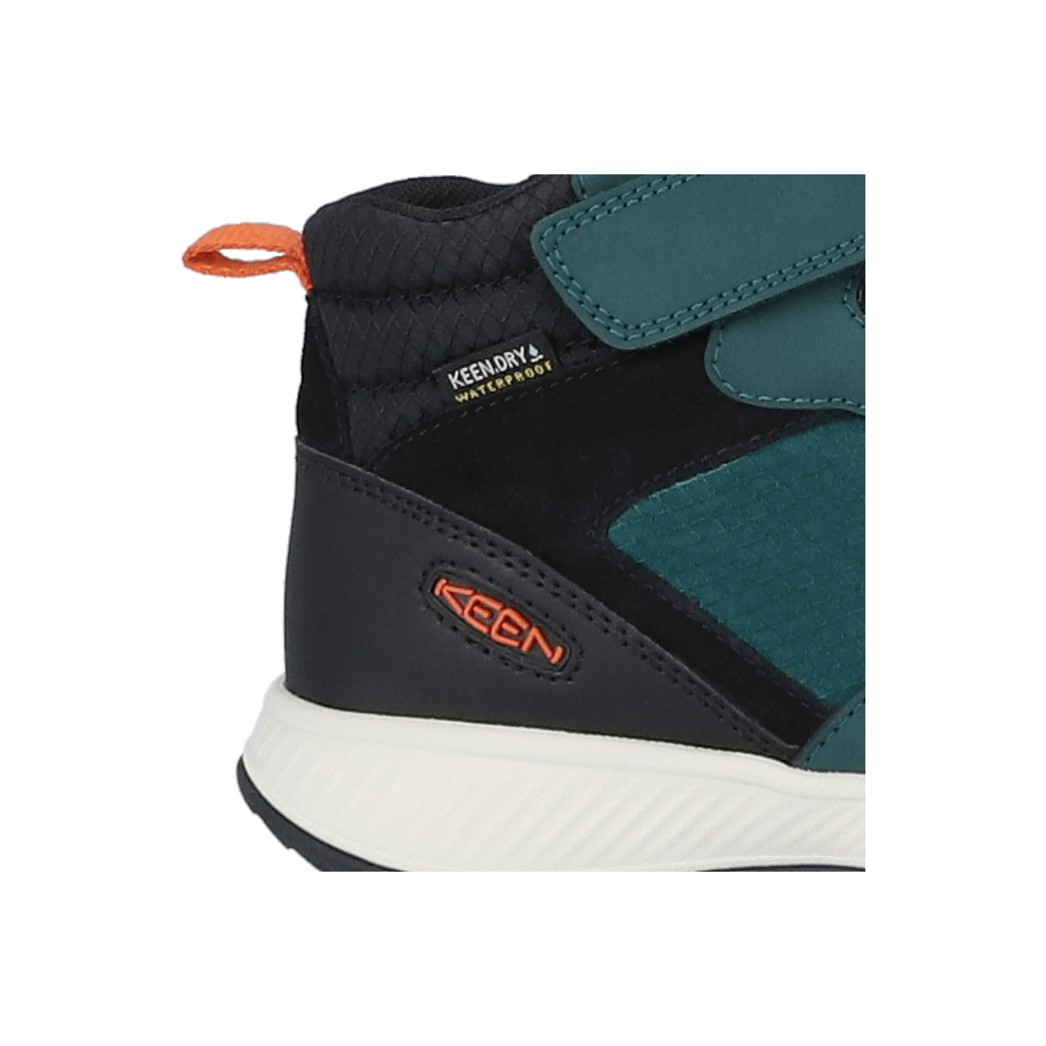 Diese abenteuerlichen Stiefel schützen die Kinderfüße vor Wind und Wetter. Mit den Skua Stiefeln von KEEN sind die Kinder bestens vorbereitet, sobald sie das Haus verlassen. Die Füße bleiben geschützt und bequem, egal bei welchem Wetter. Das wasserabweisende Obermaterial aus wasserdichtem Leder und Performance-Mesh hält zusammen mit dem KEEN.DRY-Membran Wasser fern von den Schuhen. Zudem können die Füßchen atmen und bleiben frisch. Die griffige Gummisohle mit multidirektionalem Profil sorgt zusammen mit der federnden Schaum-Innensohle dafür, dass jeder Schritt optimal gedämpft wird, während immer Halt und Traktion gewährleistet sind. Trotz ihrer Robustheit und ausgezeichneten Griffigkeit sind die Winterstiefel dank der elastischen Bungee-Schnürung mit zusätzlichem Klettverschluss einfach an- und auszuziehen. Die Schuhe sind nicht nur praktisch, sondern auch nachhaltig. Sie sind vollständig PFAS-frei und das Leder stammt aus LWG-zertifizierten Gerbereien.