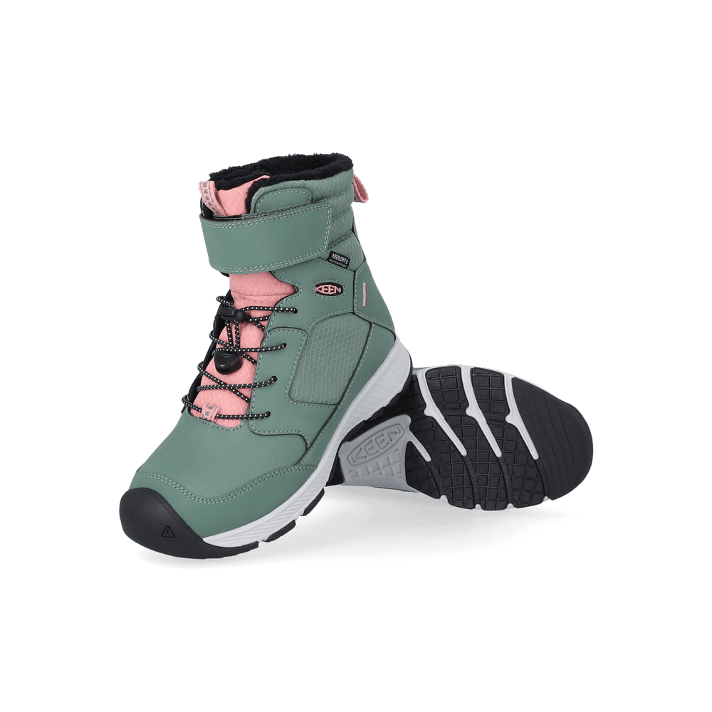 Diese abenteuerlichen Winterstiefel schützen die Kinderfüße vor Kälte und Nässe, sobald sie das Haus verlassen. Die Füße bleiben warm und bequem, selbst bei eisiger Kälte und Schnee. Das warme Fleece-Futter wird mit zusätzlicher KEEN.WARM-Isolierung kombiniert, die Schutz bei Temperaturen bis zu -32°C bietet. Das wasserdichte, atmungsaktive KEEN.DRY-Membran verhindert das Eindringen von Feuchtigkeit. Die Gummiprofilsohle sorgt für ausgezeichnete Traktion, während die Schaum-Zwischensohle jeden Schritt dämpft, ohne viel Gewicht hinzuzufügen. Das An- und Ausziehen ist dank der elastischen Bungee-Schnürung in Kombination mit dem Klettverschluss einfach. So kann die Passform leicht angepasst werden und ein guter Halt ist garantiert. Neben praktisch und stilvoll sind die Winterstiefel auch nachhaltig. Sie sind vollständig PFAS-frei und das verwendete Leder stammt aus LWG-zertifizierten Gerbereien.