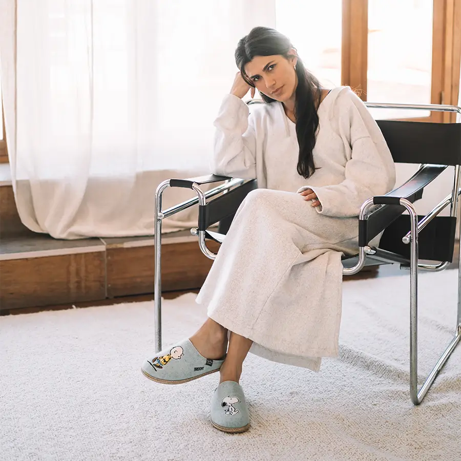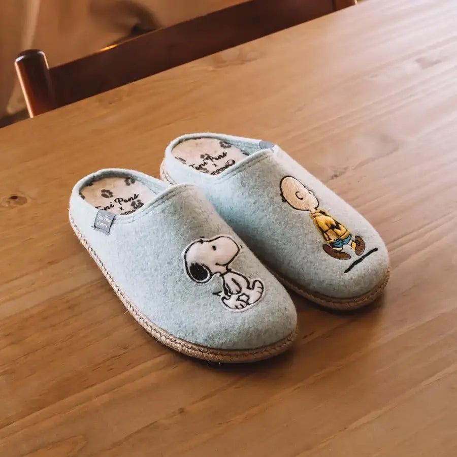 Lerne die Special Editions der Winterkollektion von Toni Pons kennen. Bei diesen Hausschuhen spielt eine der weltweit bekanntesten und beliebtesten Comicfiguren die Hauptrolle: Snoopy. Die nachhaltigen Hausschuhe sind aus Filz gefertigt und bieten wohlige Wärme sowie hohen Tragekomfort. Sie lassen sich dank des praktischen Einstiegs leicht anziehen und sind mit einem herausnehmbaren Fußbett ausgestattet. Die rutschfeste Gummisohle sorgt für sicheren Halt auf glatten Böden im Haus und ist robust genug für den Gebrauch im Freien.