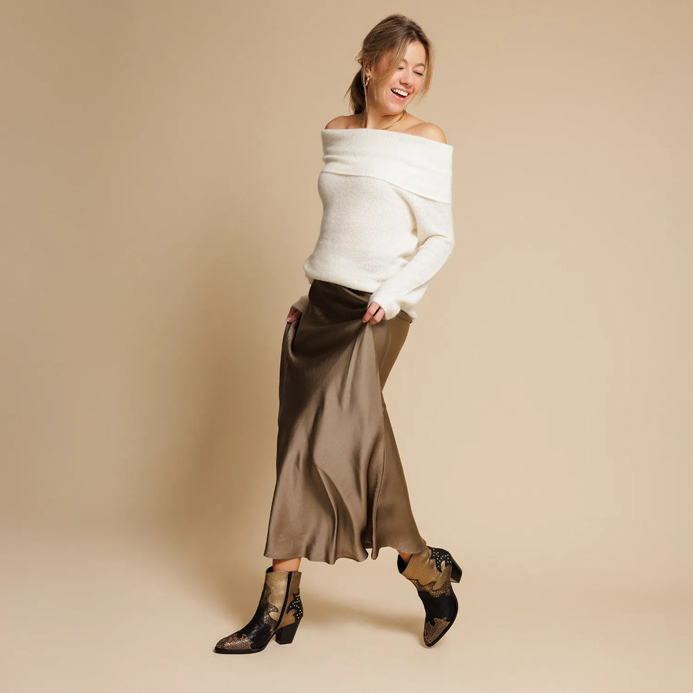Setze ein modisches Statement mit diesen trendigen Western-Stiefeletten von Lazamani. Das verspielte Patchwork-Design vereint luxuriöse Materialien wie glänzendes Metallic-Leder, dezent geprägtes Schlangenprint-Leder, weiches Wildleder und markante Nieten zu einem stilvollen Gesamtbild. Die goldenen und schwarzen Farbtöne verleihen den Boots eine edle Ausstrahlung, während das raffinierte Linienmuster für einen modernen Twist sorgt. Der 6 cm hohe Blockabsatz schenkt zusätzliche Höhe, ohne auf Komfort zu verzichten, während das weiche Innenfutter und das lederne Fußbett für ein angenehmes Tragegefühl sorgen – perfekt, um diese Eyecatcher den ganzen Tag über zu tragen. Ideal zu einer lässigen Jeans oder einem festlichen Kleid.