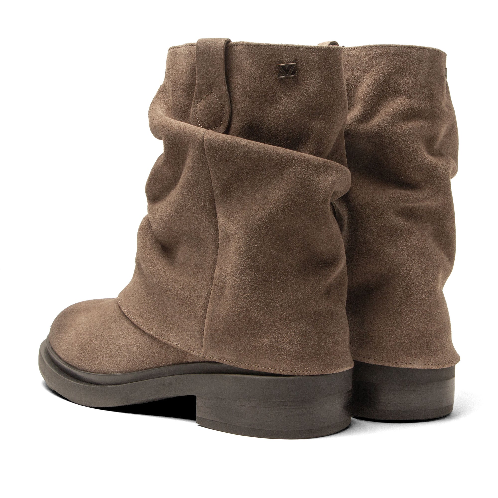 Die Tari Boots von Lazamani sind dein Alltags-Essential. Dieser taupefarbene Veloursleder-Stiefel vereint lässigen Komfort mit einem stilvollen Twist. Der locker fallende Schaft verleiht dem Boot einen entspannten Look, der sich mühelos mit deiner Lieblingsjeans oder einem Strickkleid kombinieren lässt. Die flache Sohle und die flexible Passform sorgen für höchsten Tragekomfort – perfekt für lange Tage oder gemütliche Spaziergänge. Ein Hauch von Western, eine warme Farbe und weiche Materialien: dein neuer Lieblingsschuh für die kühleren Monate.