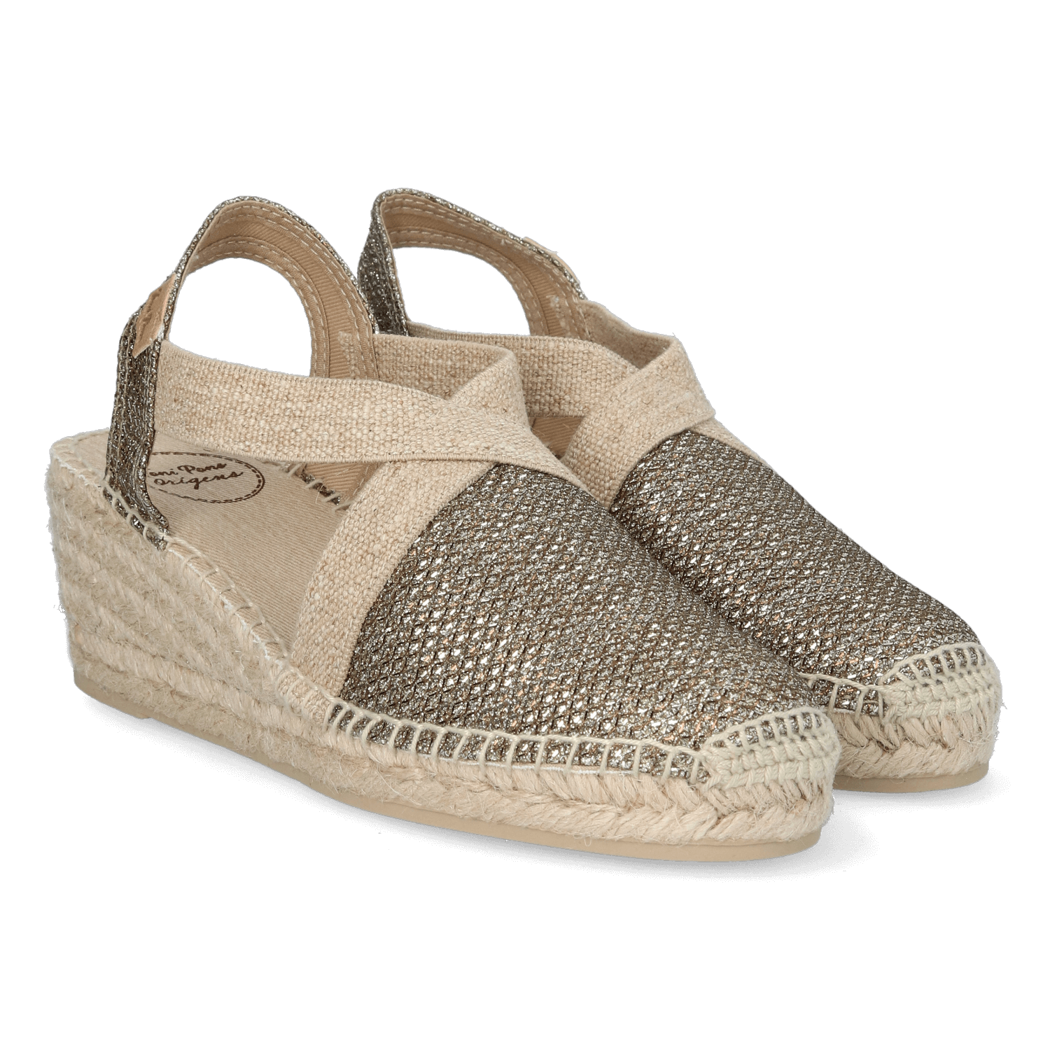 Diese Espadrilles sind eine perfekte Kombination aus Stil und Tragekomfort. Ein Hauch von Glitzer und Glamour, aber ansonsten sehr schlicht und zeitlos. Das sind die Triton Espadrilles von Toni Pons. Das Obermaterial besteht aus hochwertigem Textil mit Glitzeraufdruck. Die authentische Seilsohle mit Keilabsatz ist für ein angenehmes Tragegefühl gepolstert. Ob man an einem schönen Sommerabend durch die Stadt spaziert, auf einer Gastroterrasse in der Sonne sitzt oder am Urlaubsort über den Boulevard flaniert, die Espadrilles Triton verleihen dem Sommeroutfit den richtigen Schliff.