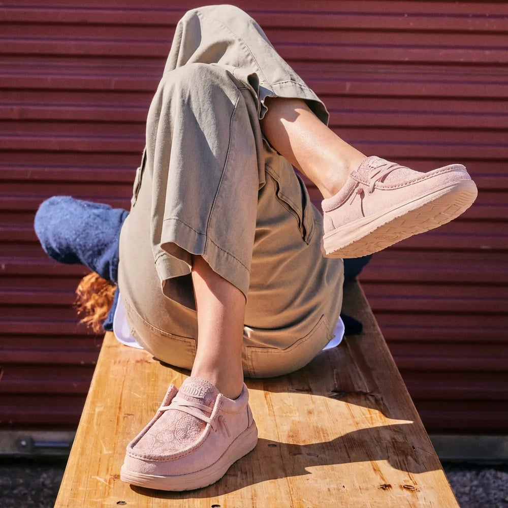 Der Boho-Style lebt – und der Wendy Comf Suede Lace Print passt perfekt dazu. Ob mit fließendem Rock, Vintage-Jeans, Flared Pants oder Häkel-Top – dieser Slip-On macht jedes Outfit komplett. Ein zarter Spitzenprint verleiht dem soften Wildleder-Obermaterial eine feminine Note. Einfach reinschlüpfen und das typische HEYDUDE-Gefühl genießen: superleicht, weich gedämpft und so bequem, dass du fast vergisst, dass du Schuhe trägst. Maximal entspannt – ganz HEYDUDE.