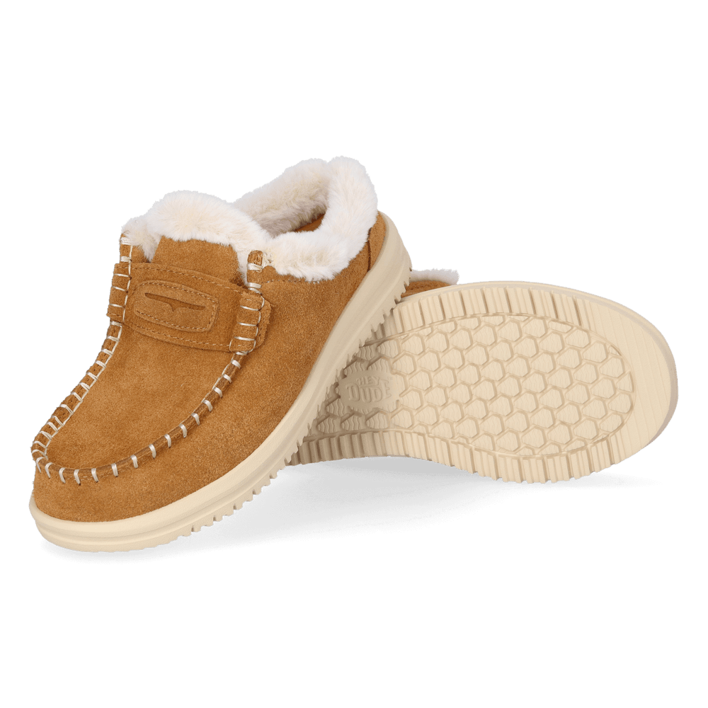 Sobald es draußen kühler wird, sind die Wendy NXT Mule genau richtig. Ob als gemütlicher Hausschuh oder stylischer Slip-On für unterwegs – sie passen immer. Weiches Wildleder trifft auf flauschiges Kunstfell – die perfekte Kombination für kalte Tage. Praktisch, bequem und easy zu stylen: Trage sie zur liebsten Vintage-Jeans oder kombiniere sie mit einem Midirock für den Abend.