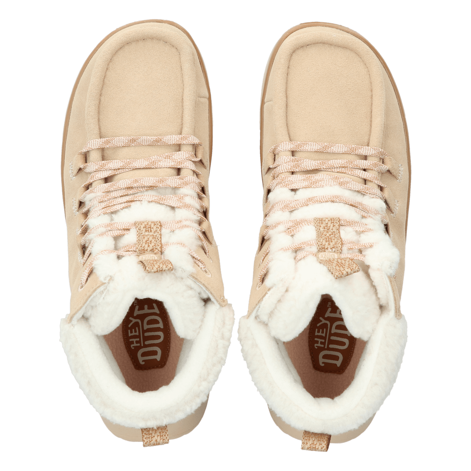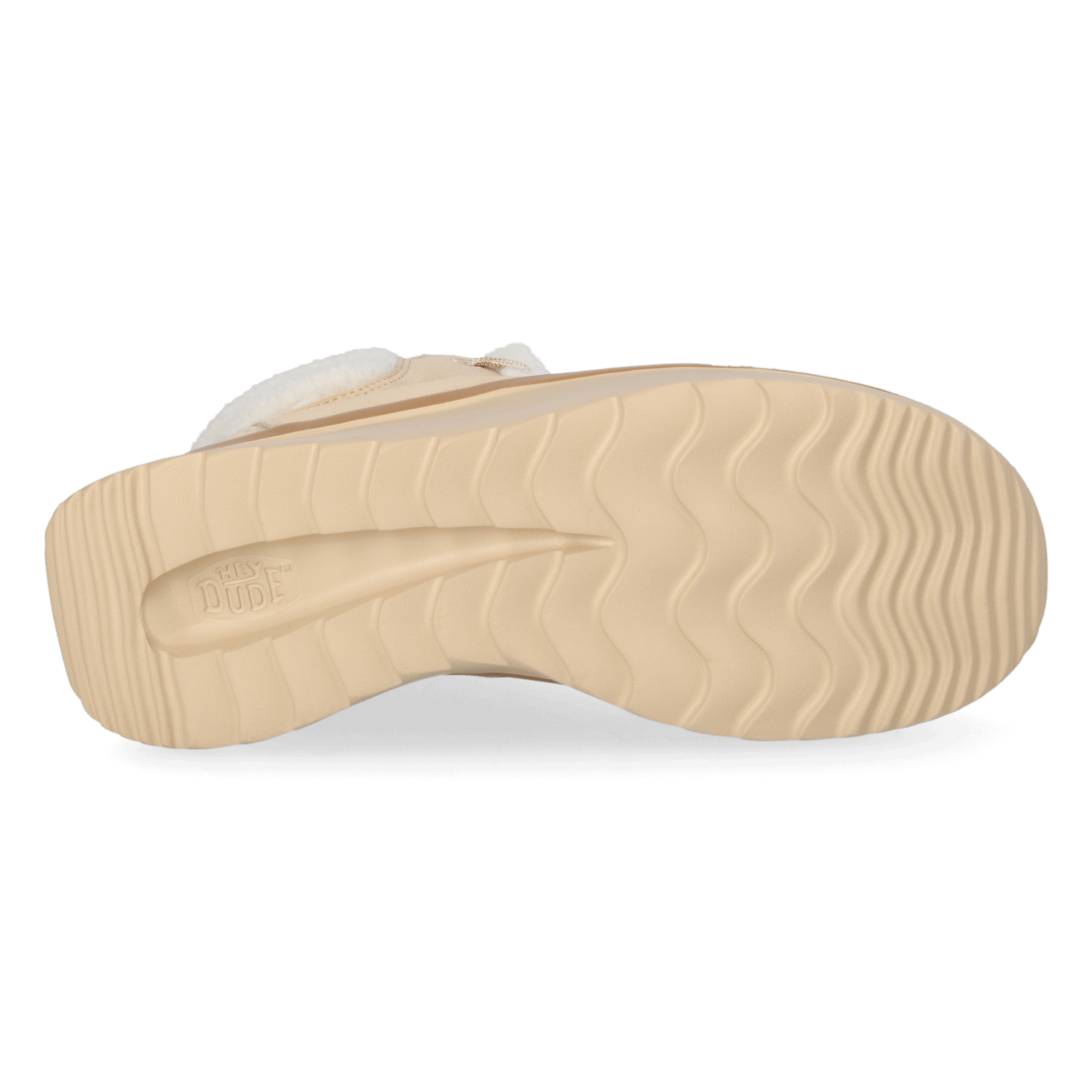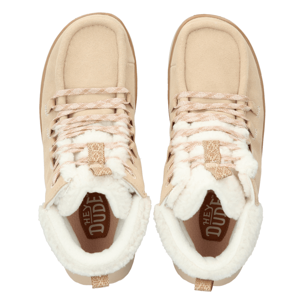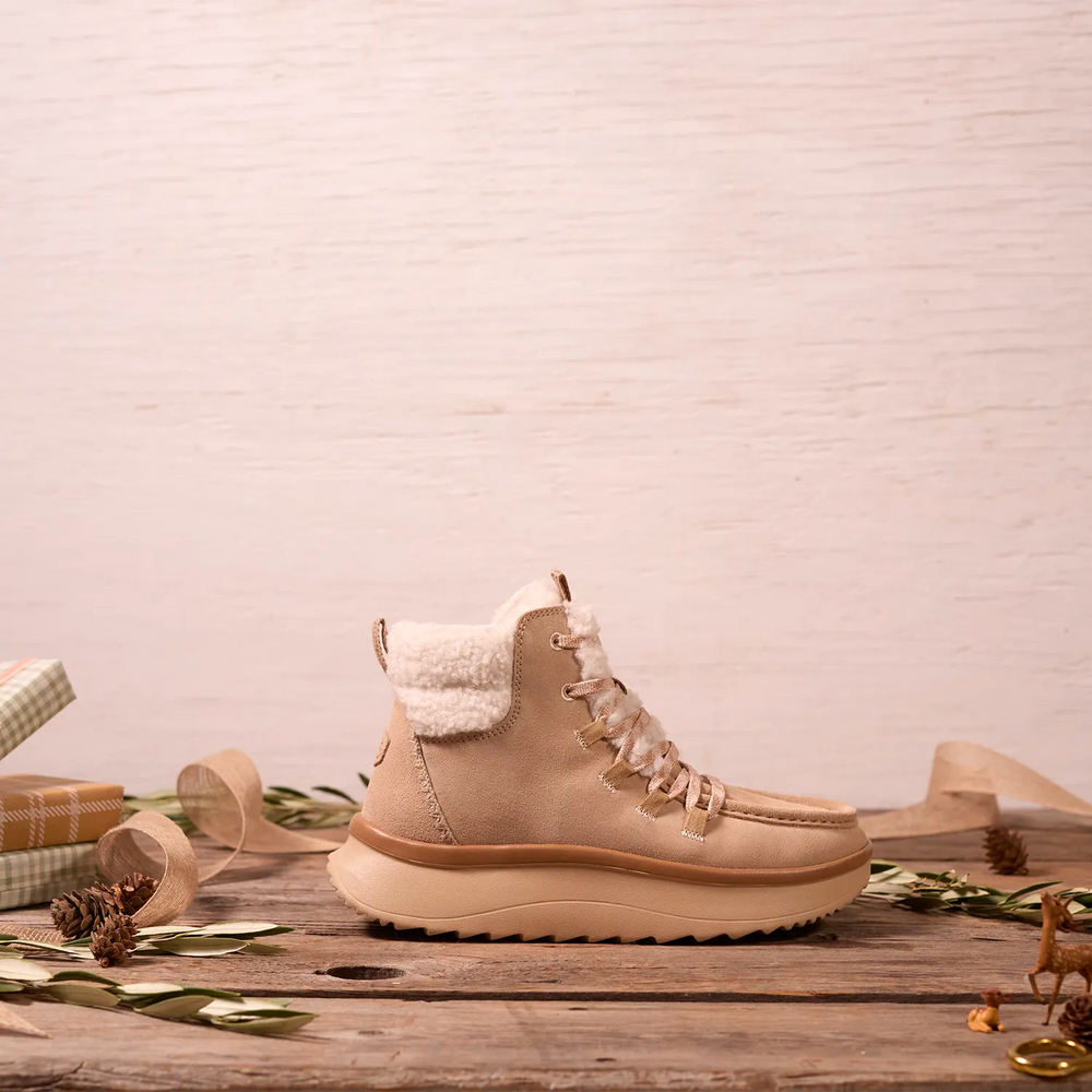 Ein Grund, sich auf kalte Tage zu freuen: Diese Winterboots bringen das Easy-On-Gefühl des Wendy-Slippers in eine winterfeste Variante. Etwas höher geschnitten, mit Wildleder-Obermaterial und kuscheligem Sherpa-Futter an Schaft und Zunge – und dabei so leicht, dass du fast vergisst, dass du sie trägst. Dank elastischer Schnürung und Schlaufen einfach reinschlüpfen, auf das herausnehmbare Schaumfußbett treten – und loslaufen. Weich, warm und super entspannt – typisch HEYDUDE.